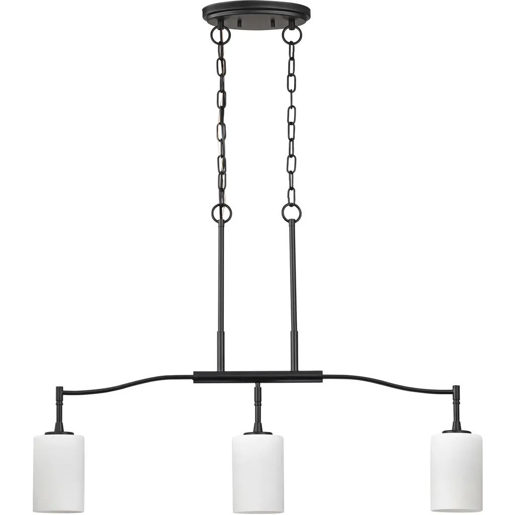Seamlessly blending transitional design with contemporary accents, the Liam 60-8218 three light island fixture exudes understated elegance. A sophisticated matte black finish, perfectly complements the soft glow of white opal glass. With its broad appeal and versatile charm, Liam elevates any room into a haven of style and comfort. Discover a world of design that speaks to both tradition and modernity, crafted with beauty in every detail.
