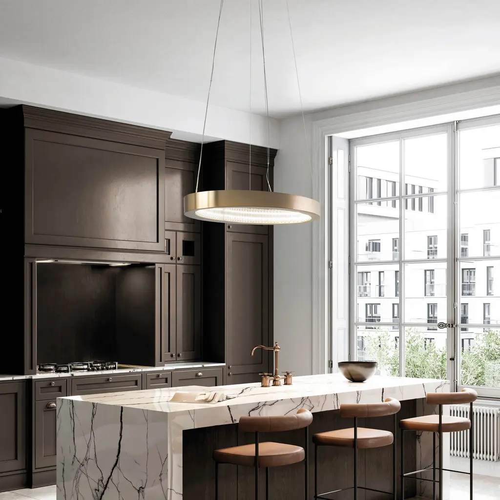 Elevate your space with the Libe Oval LED Pendant Light from Masiero. The cutting-edge LED technology creates three layers of alluring illumination, making it a captivating focal point. Transform any room into a stylish and efficient environment with this sophisticated and exclusive addition. Illuminate your ambiance with a touch of luxury. Highlights