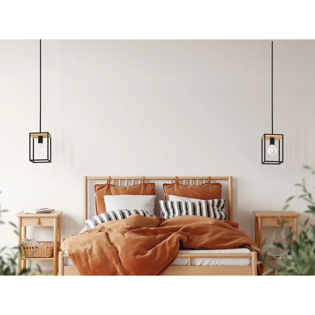 The Libertad single light pendant by Eglo delivers charming, opulent attitude in a small package. Featuring a Structured Black metal open frame surrounding an open bulb. A natural wood accent offers a toned down element against the structured black bulb socket. With the black adjustable hanging cord you can can set this pendant at just the right height