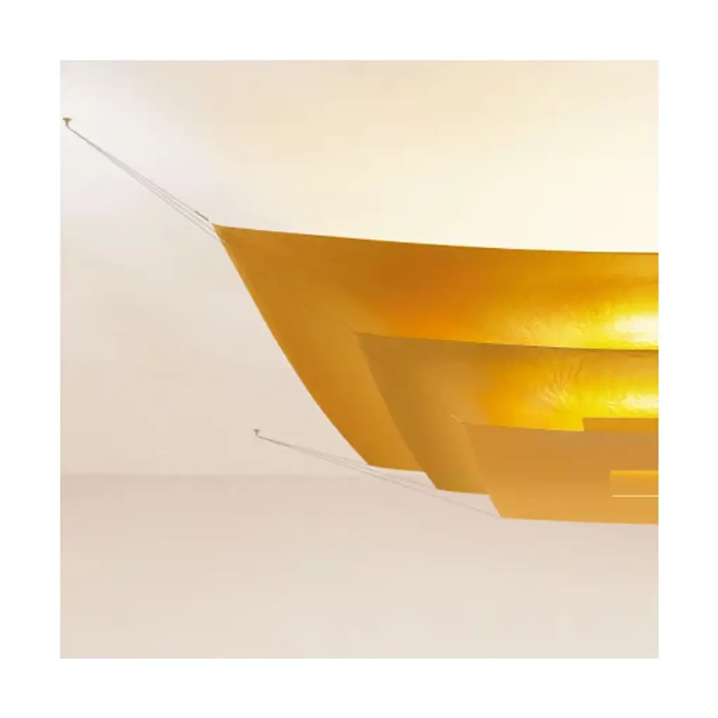 The Ingo Maurer Lil Luxury LED Semi-Flushmount creates quite the display in the sky with its visuals alone. The entire fixture is composed of 3 paper sails suspended over the LED light source by polyester string, each acting as a layer of diffuser for the ceiling light. As light is directed and diffused through the paper shades, it creates a bright and indirect ambiance. Eye catching and visually stunning, this piece does wonders to make modern dining rooms shine.