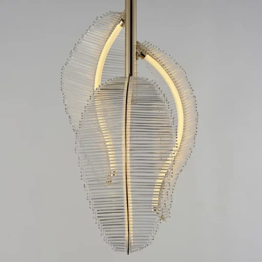 The Lillet LED Pendant from Studio M provides the luminous charm of Art Nouveau. Meticulously fashioned from feather-like handcrafted steel and crystal, this fixture exudes organic elegance. Enhanced by subtle LED strips, its biophilic forms emit a captivating glow, highlighting their graceful contours and illuminating the surroundings below. Embrace the refinement of nature-inspired design and elevate your space with the celestial allure of the Lillet LED Multi-Light Pendant—a harmonious fusion of artistry and luminosity.