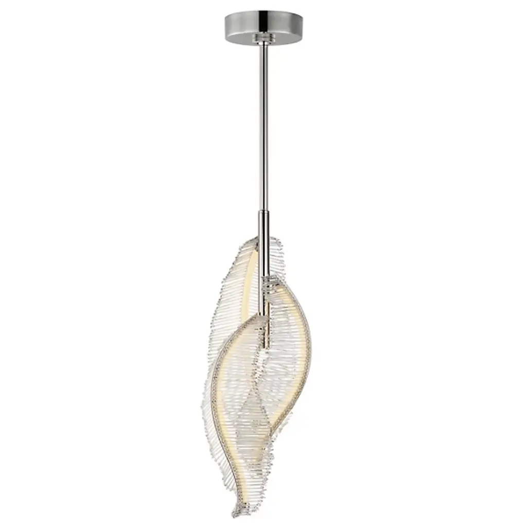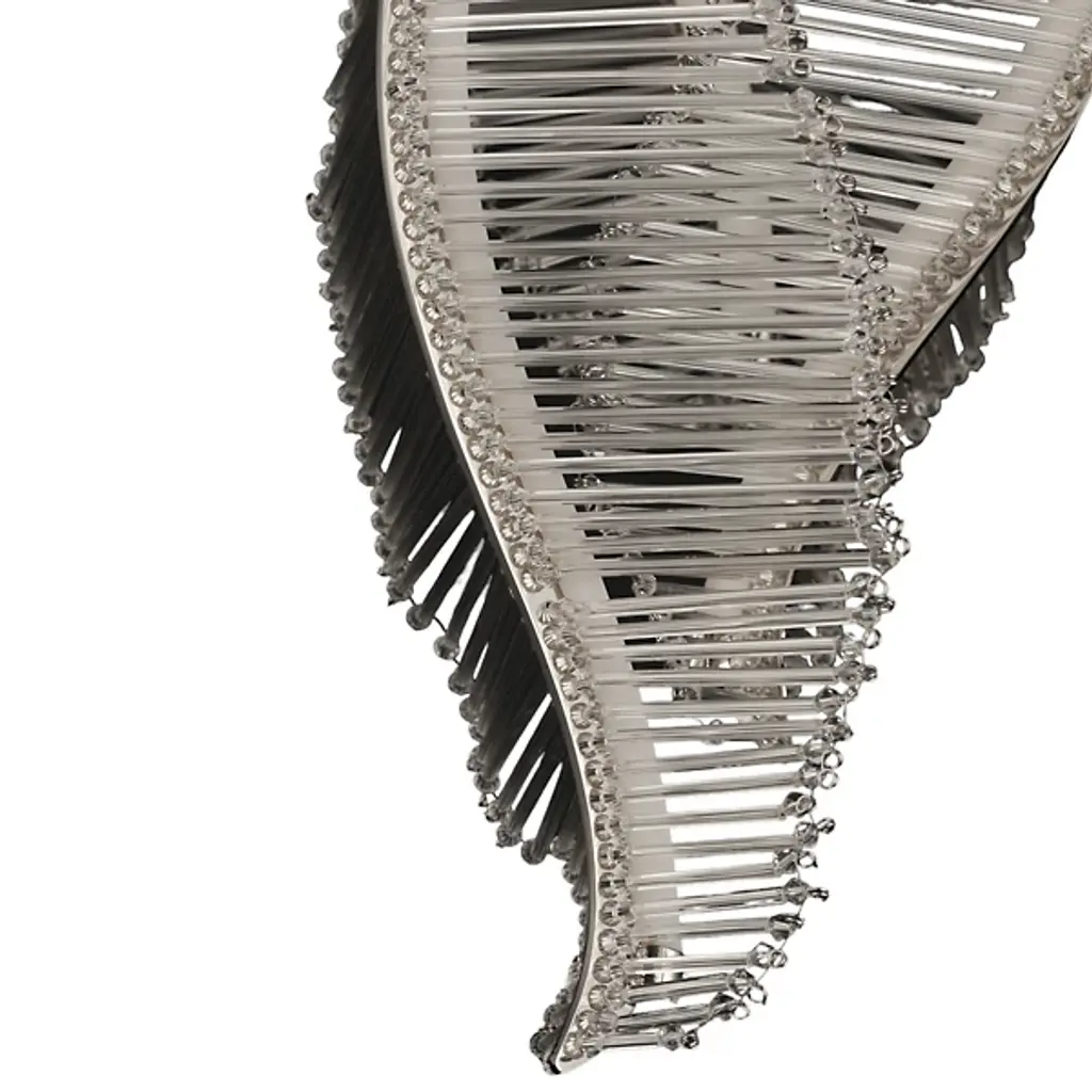 The Lillet LED Pendant from Studio M provides the luminous charm of Art Nouveau. Meticulously fashioned from feather-like handcrafted steel and crystal, this fixture exudes organic elegance. Enhanced by subtle LED strips, its biophilic forms emit a captivating glow, highlighting their graceful contours and illuminating the surroundings below. Embrace the refinement of nature-inspired design and elevate your space with the celestial allure of the Lillet LED Multi-Light Pendant—a harmonious fusion of artistry and luminosity.