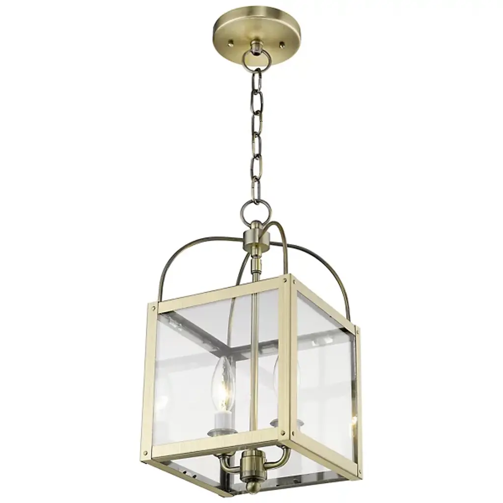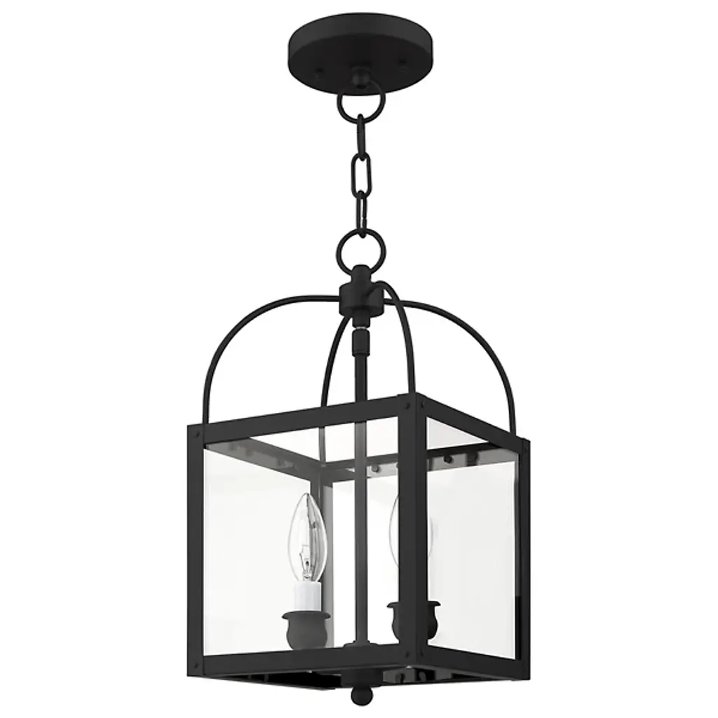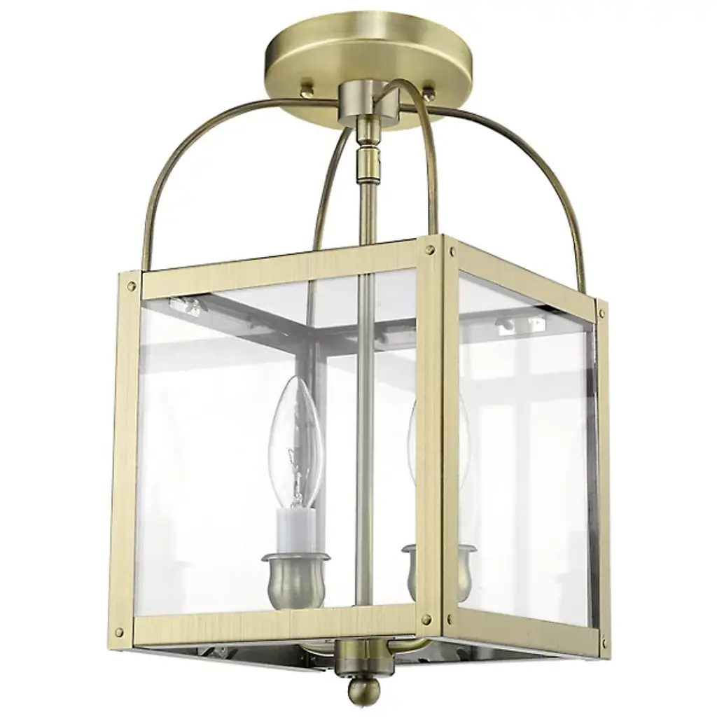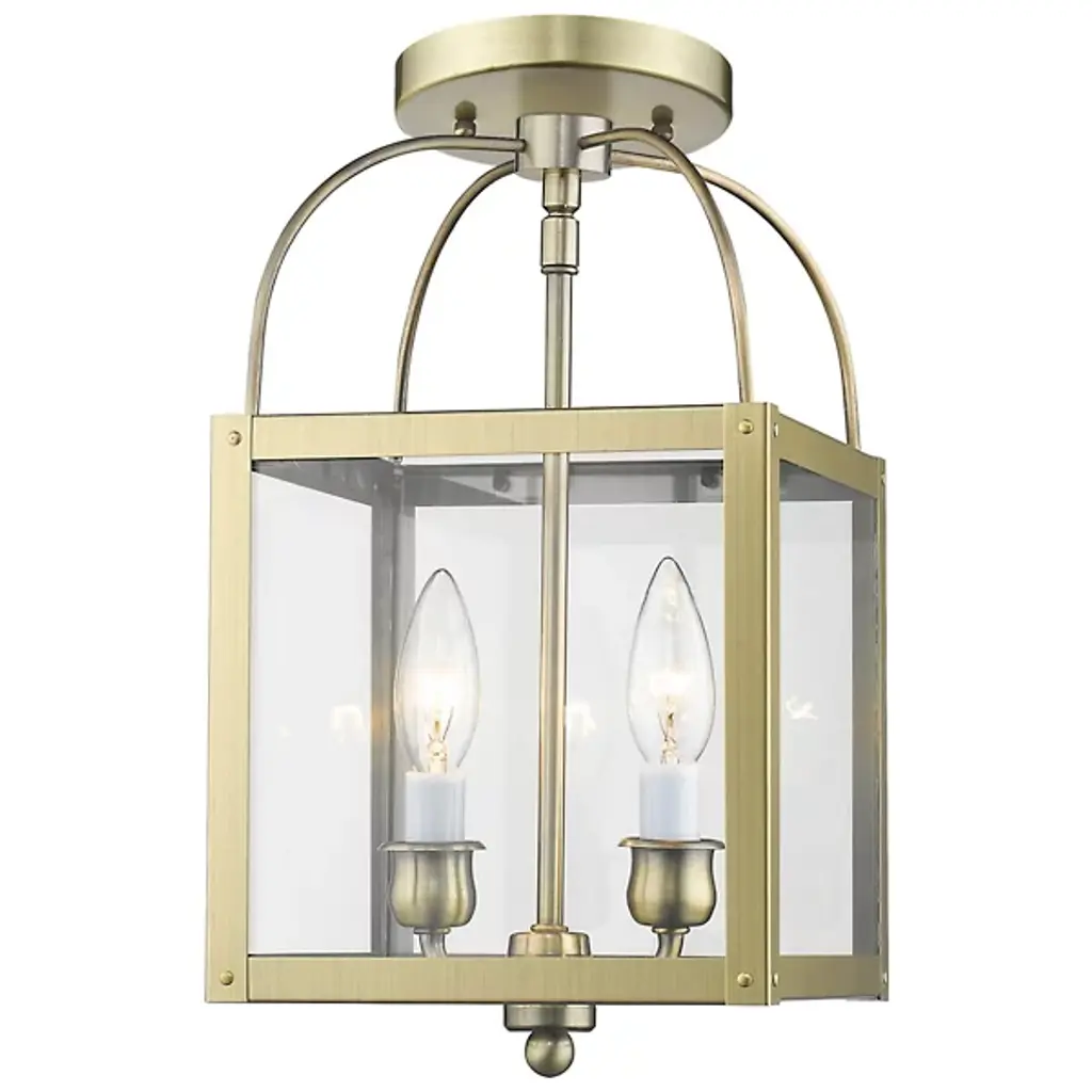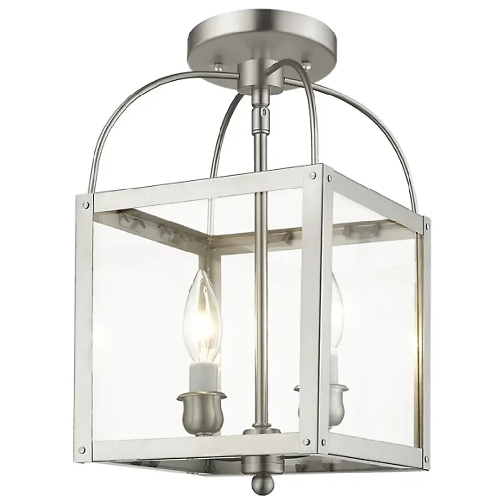 The Lillian 2 Light Flushmount / Mini Pendant by Alder & Ore has a clean composition and transitional feel that is at home in a range of locations. Supported from a round canopy by a single stem that travels throughout this entire design, a pair of candelabras are set within a hand-worked steel frame that houses glass panels. Topped with curved metal rods and accented with a simple, spherical element at its base, the crisp lines and graceful curves found throughout this fixture are dressed up with a handsome finish.