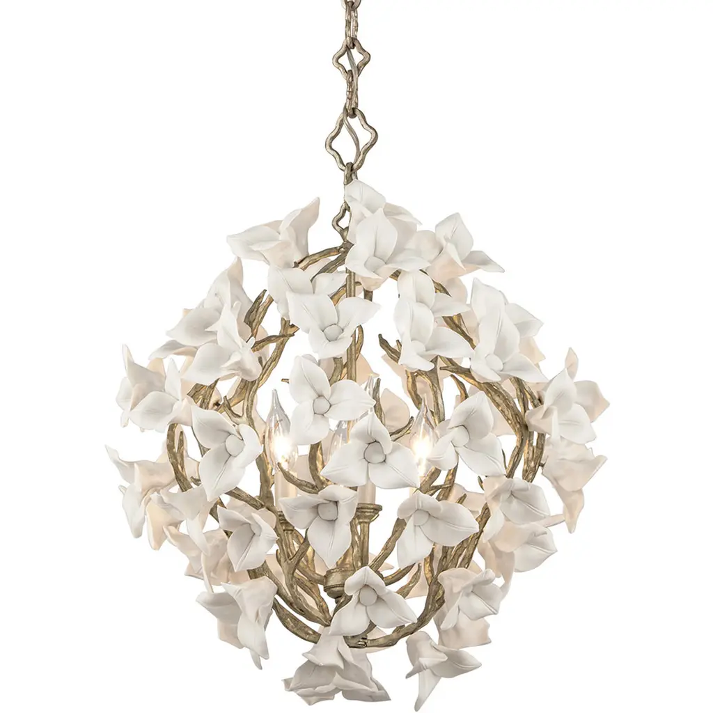 This 4 light Pendant from the Lily collection by Corbett Lighting will enhance your home with a perfect mix of form and function. The features include a Enchanted Silver Leaf finish applied by experts. This item qualifies for free shipping!
