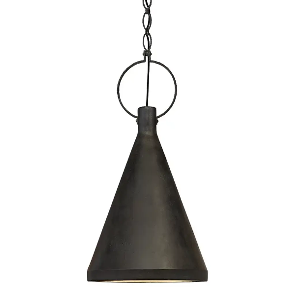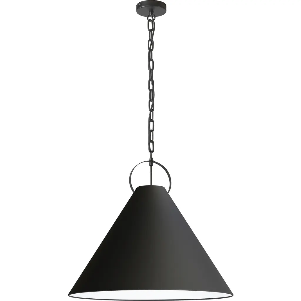 Give your living space a utilitarian design aesthetic with the Limoges Pendant by Visual Comfort. The eye is drawn to the elegant ring that lines a chain of links above the pendant’s metal frame. This chain is secured in the air by a ceiling canopy so that light from the pendant’s halogen bulb can easily disperse in an overhead manner. This fixture’s conical shape and steel frame make it an excellent choice for a dining room light.