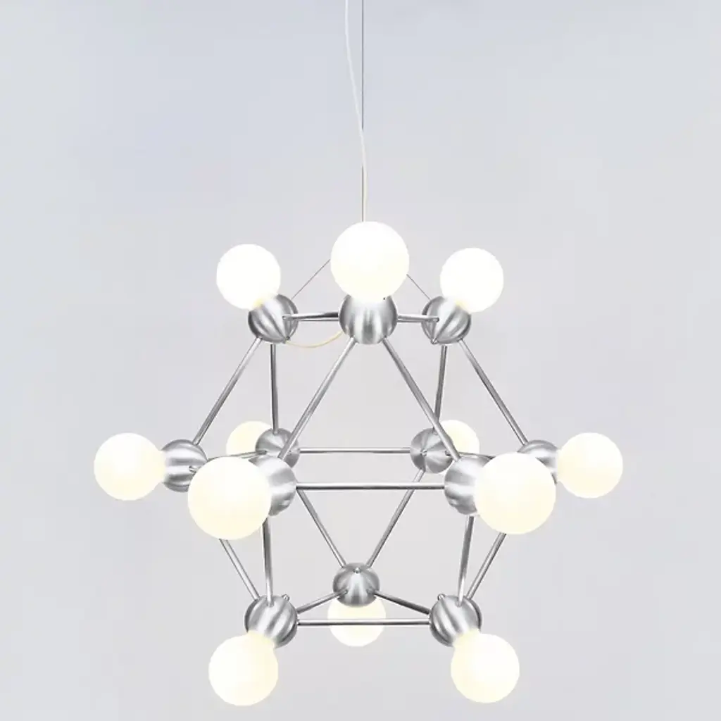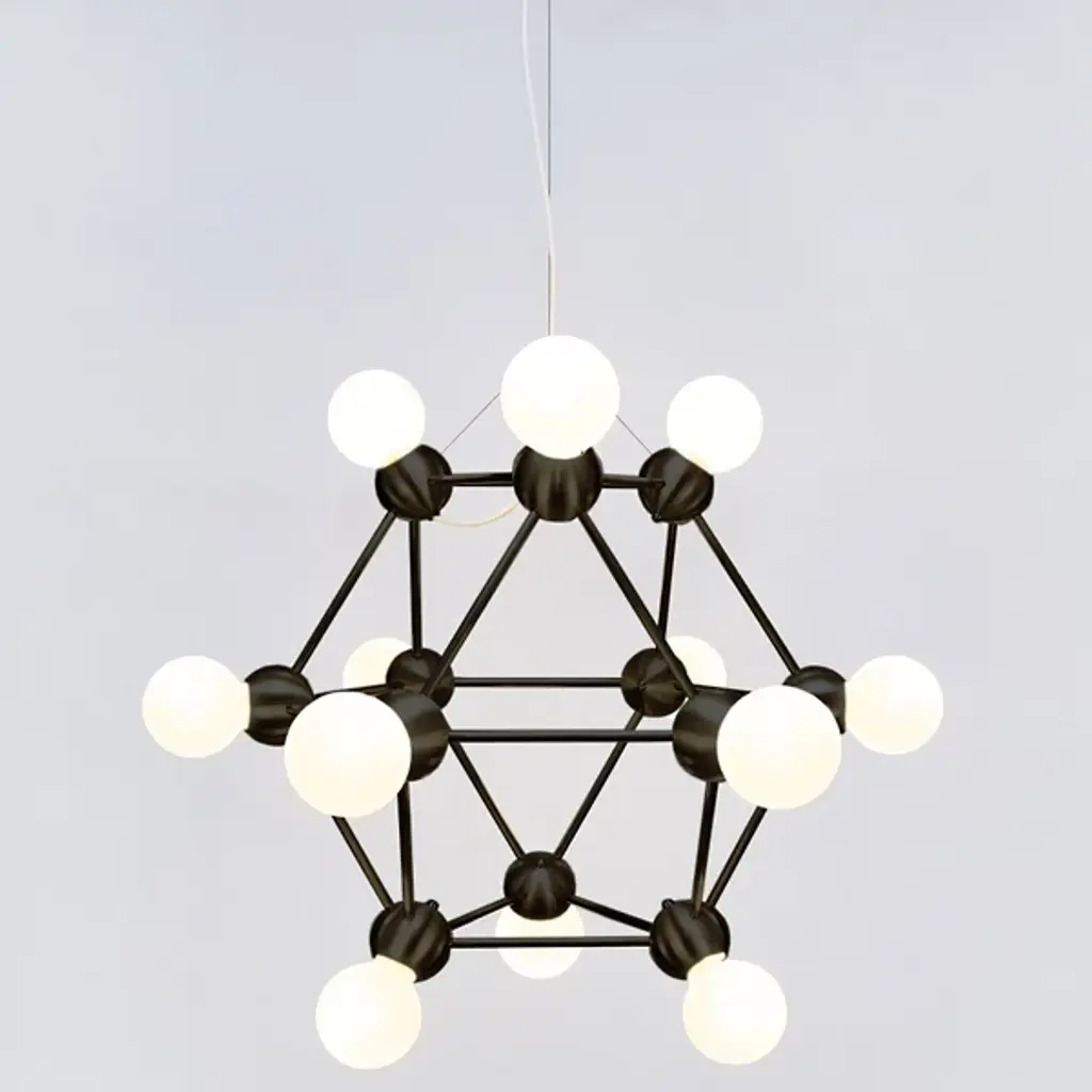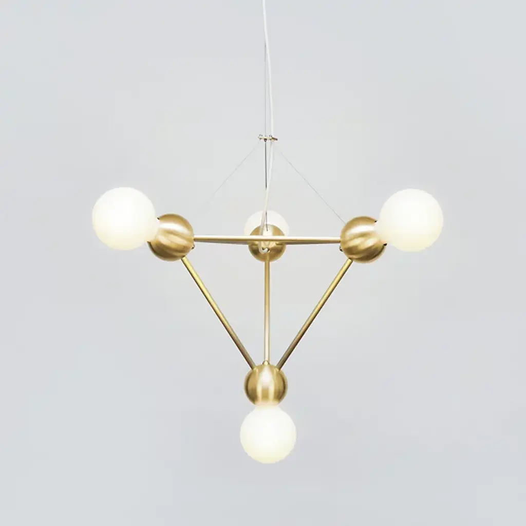 Sculptural décor at first glance elevates the ambiance with its lively appeal. The Lina 04 Small Pyramid Pendant by Rosie Li Studio reflects her penchant for constructing modular fixtures that focus on simple geometry and pared-down forms. Rosie Li builds a pyramid-shaped structure that seamlessly integrates exposed light bulbs to achieve a sculptural quality reminiscent of molecular models. The result is an aesthetically pleasing chandelier that creates an organic, three-dimensional effect. Part of the Lina collection, each piece is made to order and assembled in Brooklyn, New York.