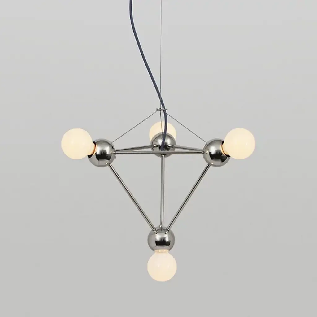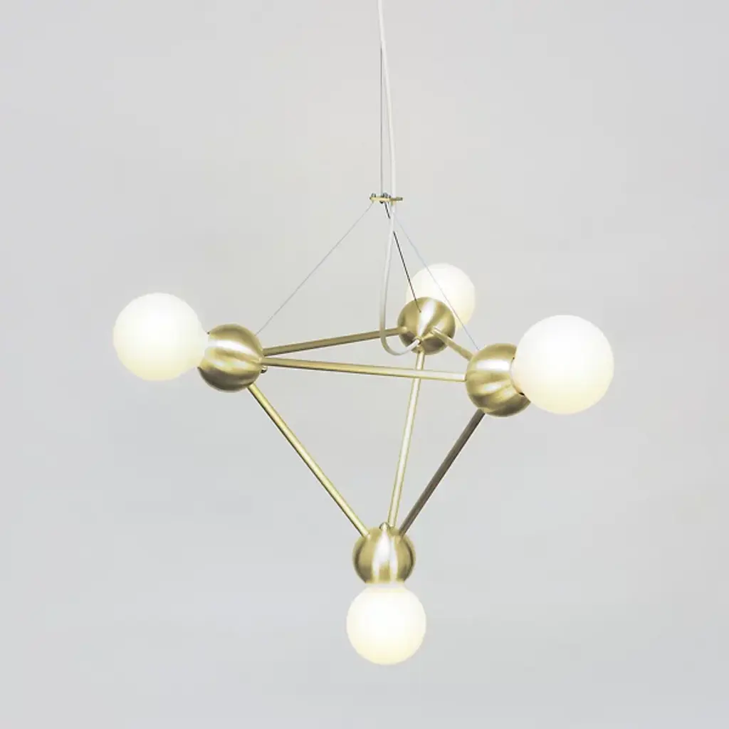 Sculptural décor at first glance elevates the ambiance with its lively appeal. The Lina 04 Small Pyramid Pendant by Rosie Li Studio reflects her penchant for constructing modular fixtures that focus on simple geometry and pared-down forms. Rosie Li builds a pyramid-shaped structure that seamlessly integrates exposed light bulbs to achieve a sculptural quality reminiscent of molecular models. The result is an aesthetically pleasing chandelier that creates an organic, three-dimensional effect. Part of the Lina collection, each piece is made to order and assembled in Brooklyn, New York.