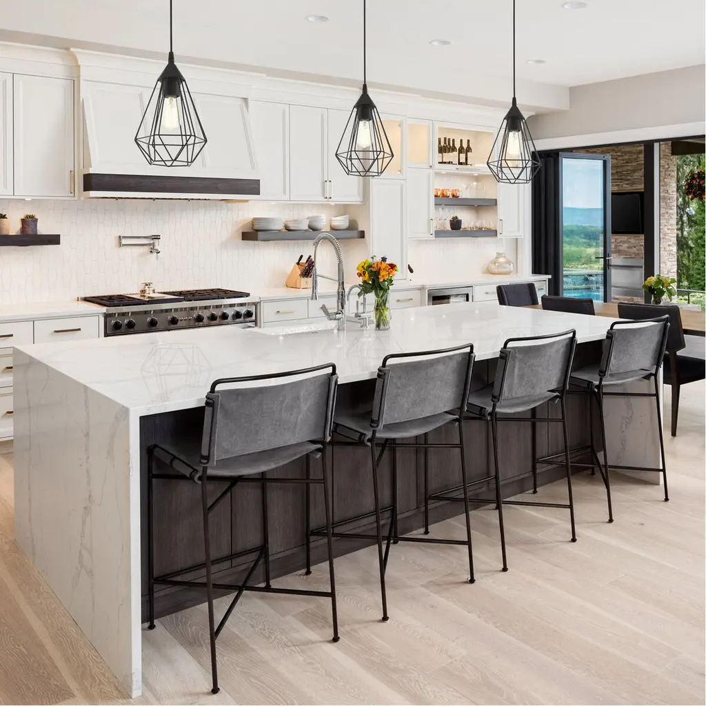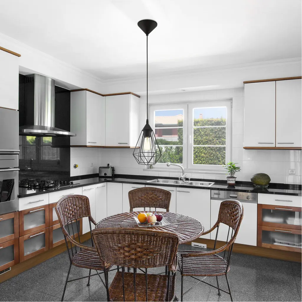 The Lindell has a modern design. The cage-like wires show a bare bulb, which is perfect for an Edison bulb. The dark finish gives the possibility to match the modern look with other themes.