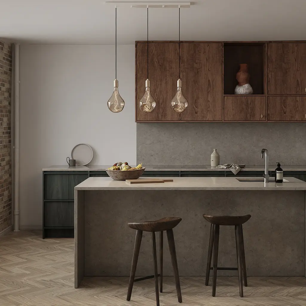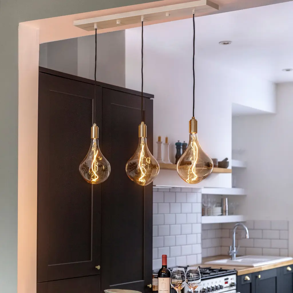 Ideal for illuminating a kitchen island, dining table or hallway, Tala displays a trio of its signature Linear pendants in a striking uniform row. Pre-paired with 3 translucent mouth-blown Voronoi II or matte-finish Sphere IV light bulbs, the design fully exhibits the British brand’s innovative LED technology. Also available without selected bulbs, the fixture includes a white powder-coated steel canopy that merges seamlessly with the ceiling.