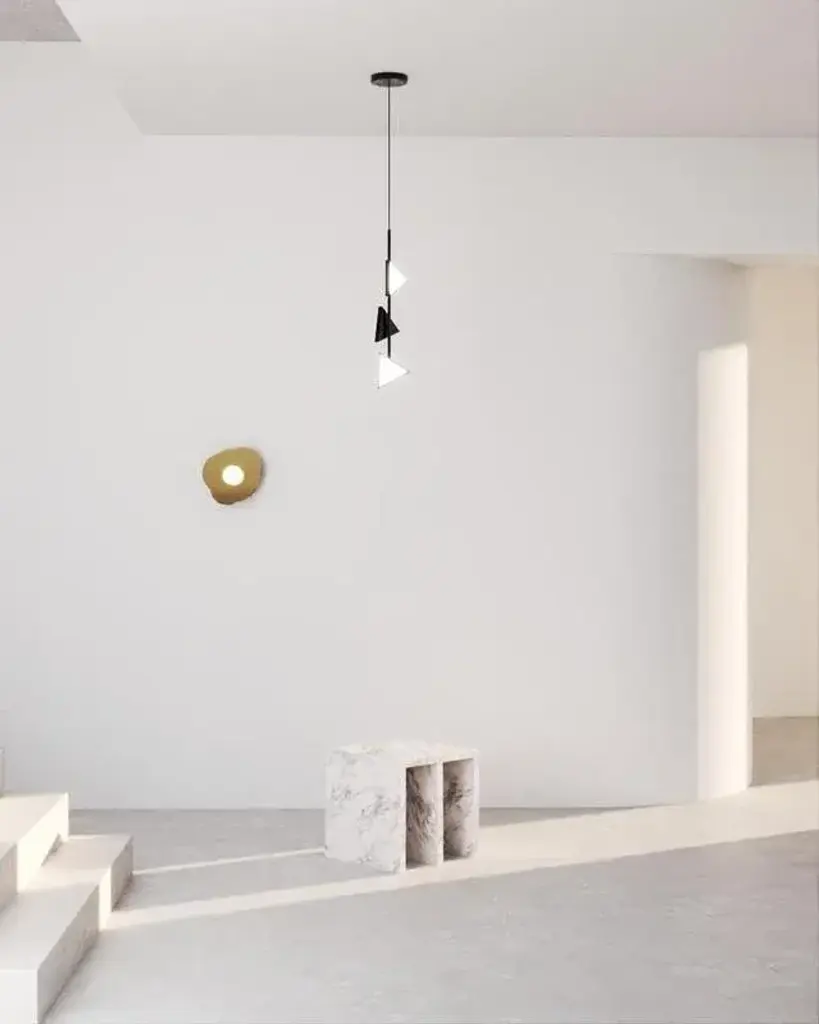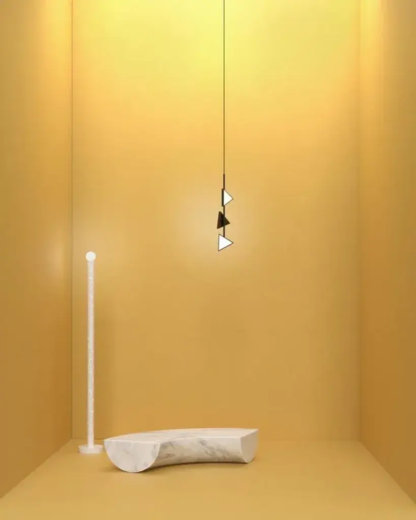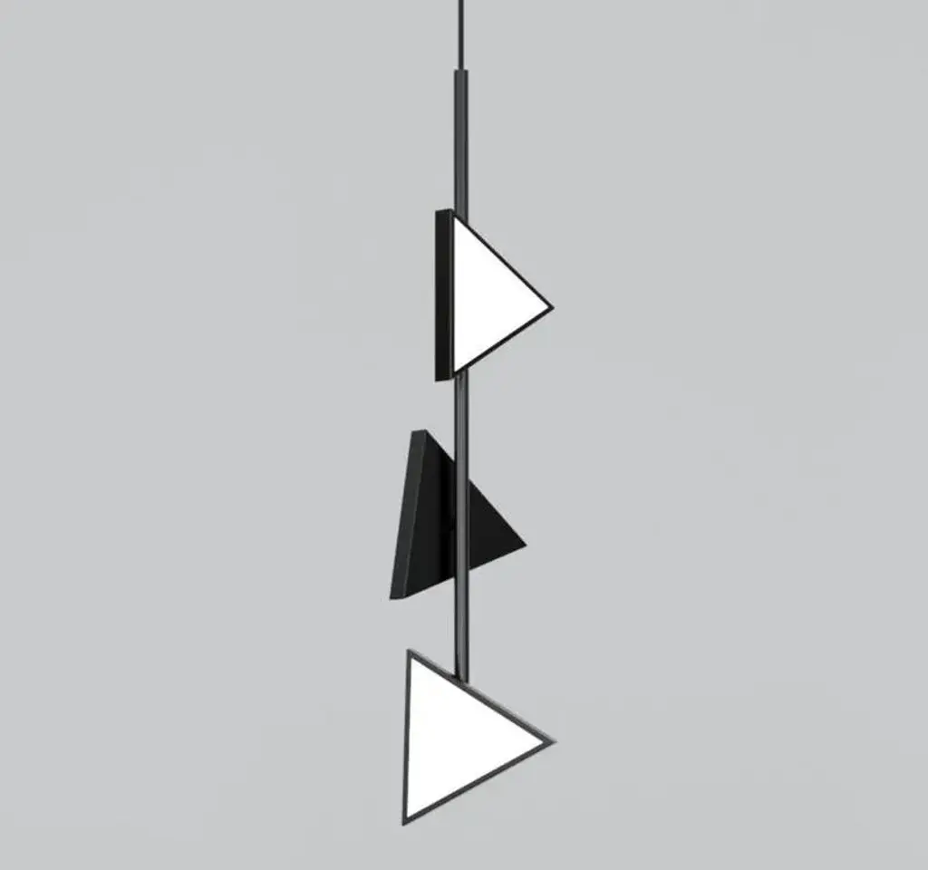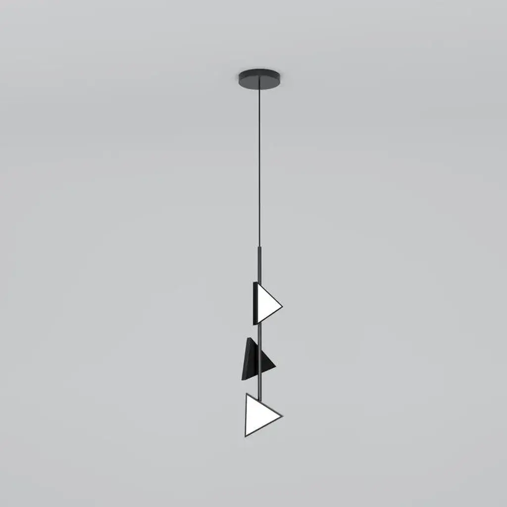 Lines and triangles pendant light by atelier areti dimensions: d 15 x w 15 x h 142.5 cm. Materials: black powder-coated metal, white acrylic panels. Available in white, black, or brass. All our lamps can be wired according to each country. If sold to the usa it will be wired for the usa for instance. up to 250v (europe/uk standard).