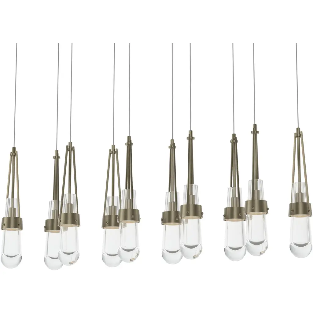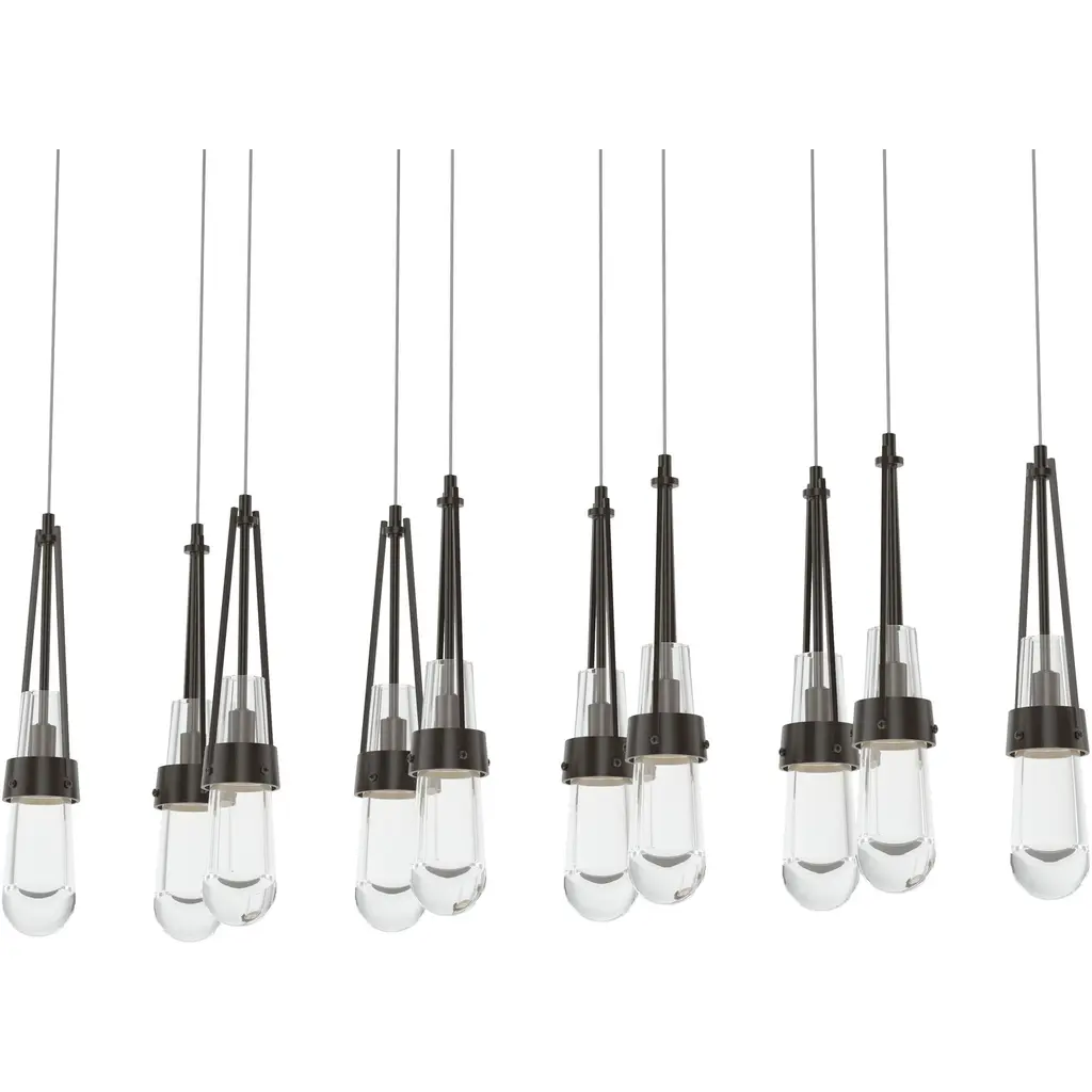 This linear Link multi-port fixture provides key options for customization—2 rows of clear glass may be aligned or staggered at the desired lengths from its rectangular canopy. Steel cuffs, handmade by Vermont artisans, embrace the clear glass of this Link 10-Light ceiling fixture. Metalwork is available in all standard finishes.
