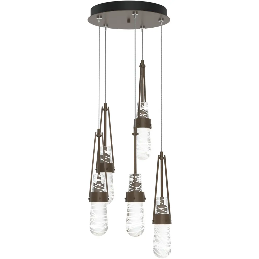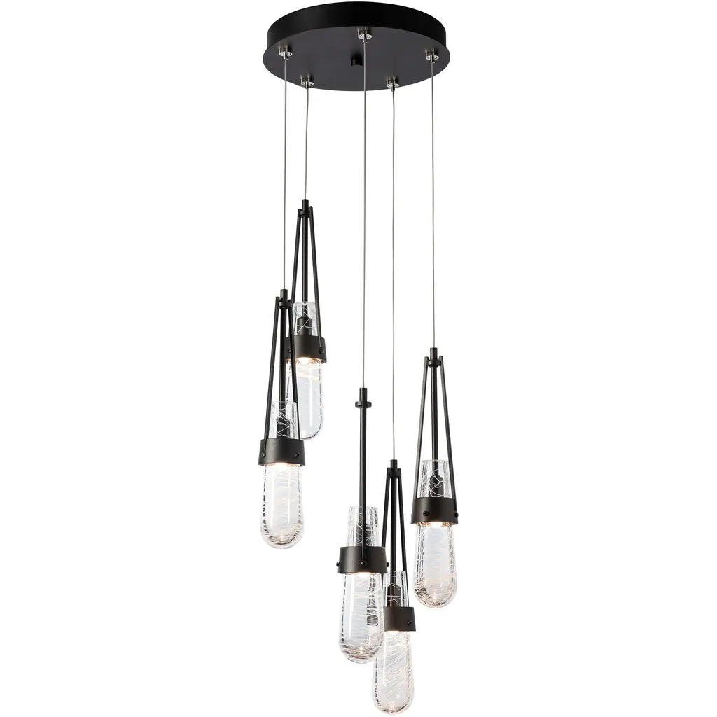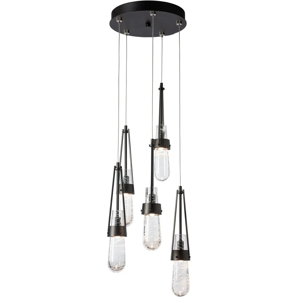 The popular Link Collection continues to grow with the Link 5-Light Blown Glass Pendant. This versatile, five-light multi-port is as easily at home as a focal piece creating cascading light, as it is as a unique and dramatic semi-flush, thanks to the enormous adjustability of the Link’s cable heights. Beautiful, artisanally blown glass (clear bubble or white threaded) from our Vermont neighbor, adorns this hanging fixture.
