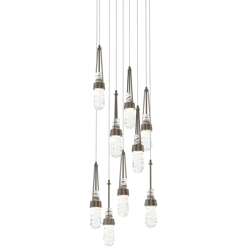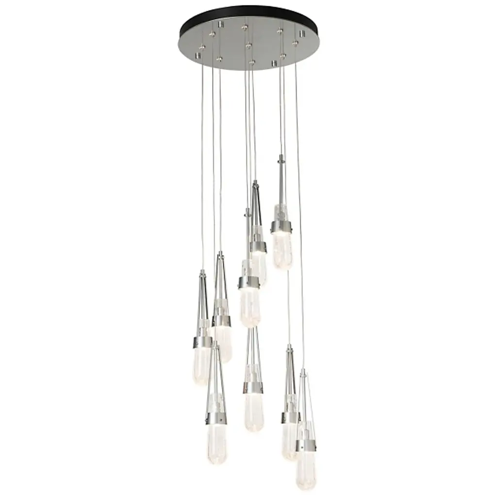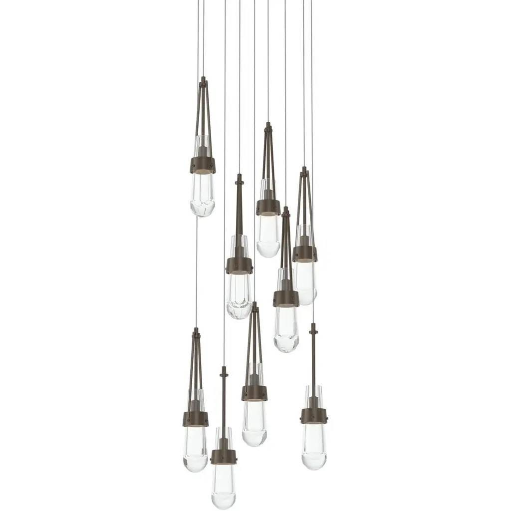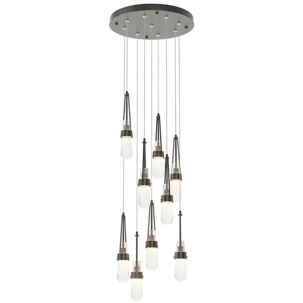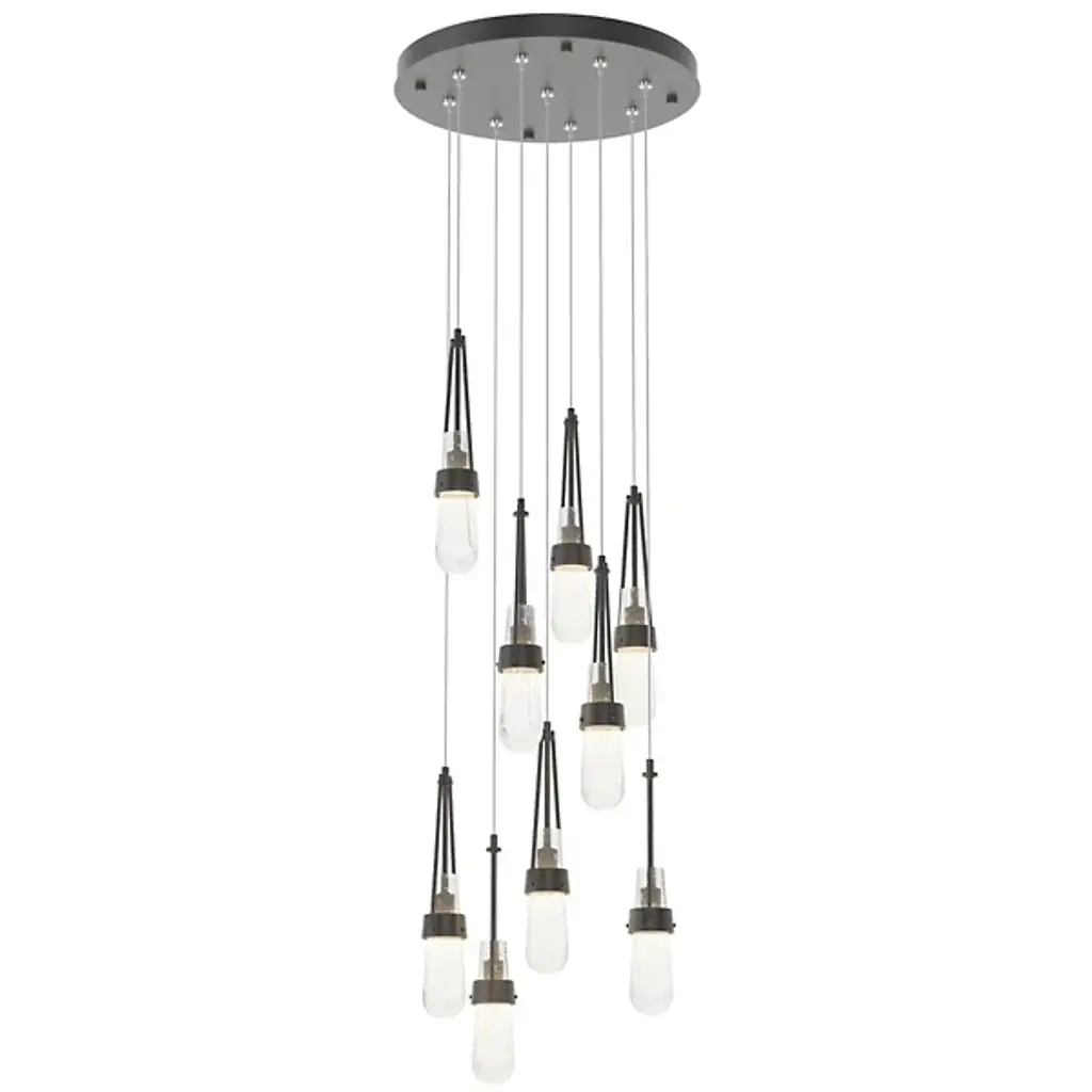 A staggeringly beautiful piece in a crowded space. The Link Blown Glass Round Multi-Light Pendant Pendant by Hubbardton Forge puts the finishing touches on any intimate indoor space. Handcrafted in Vermont, this hanging pendant light is made with nine pieces of blown glass that are in a staggered suspension formation. This modern pendant light is sloped ceiling adaptable and sports a durable powder-coated finish. Use this hanging pendant light to add depth and nuance to any kitchen or large-scale dining room space.
