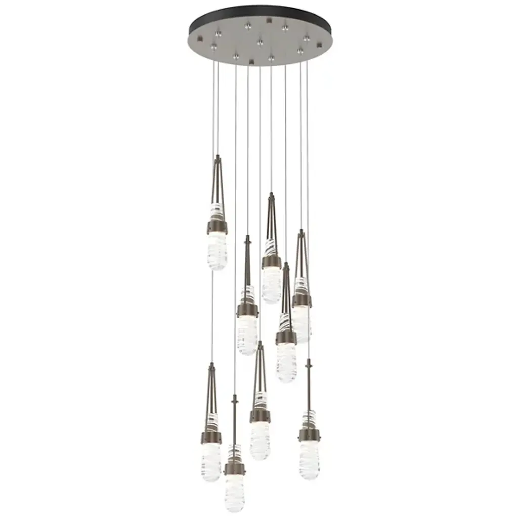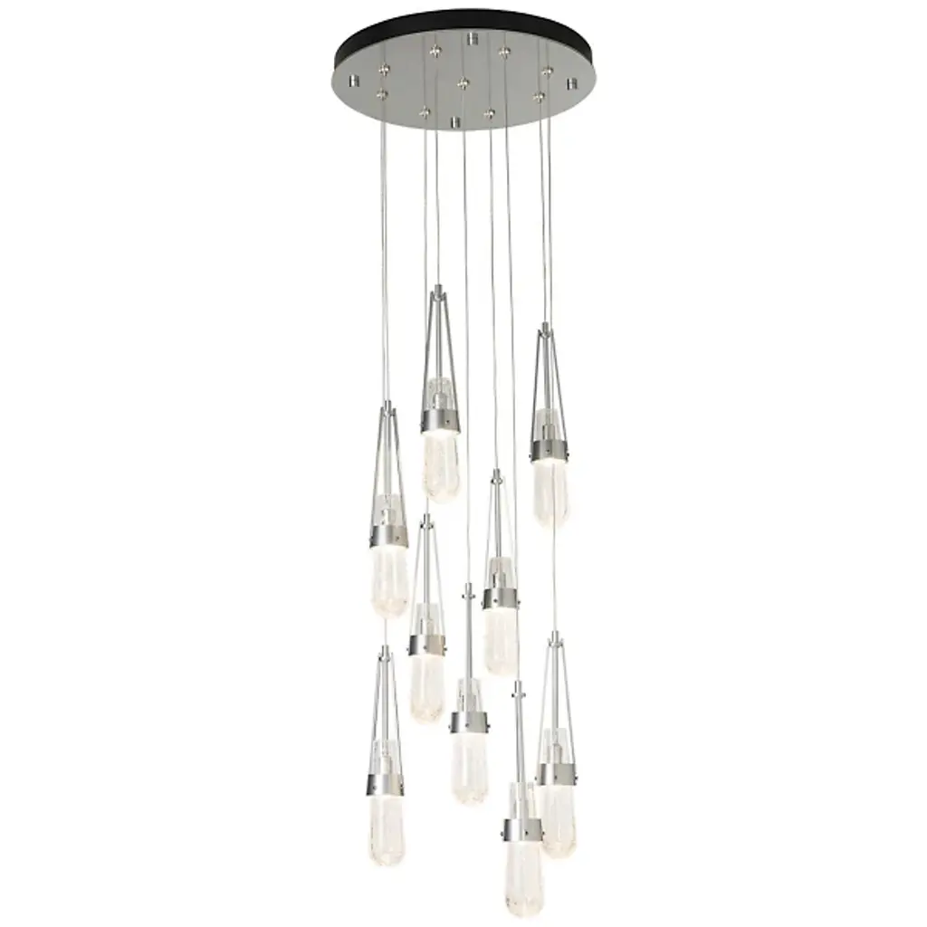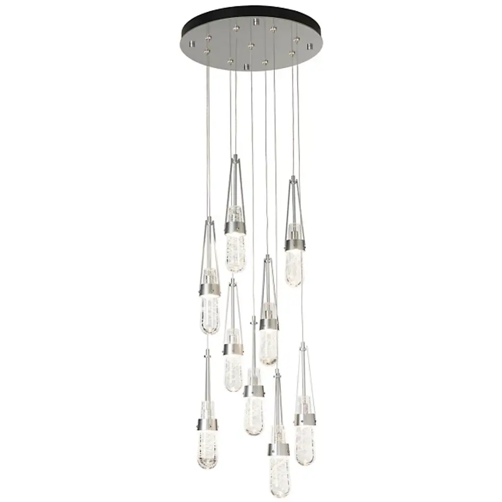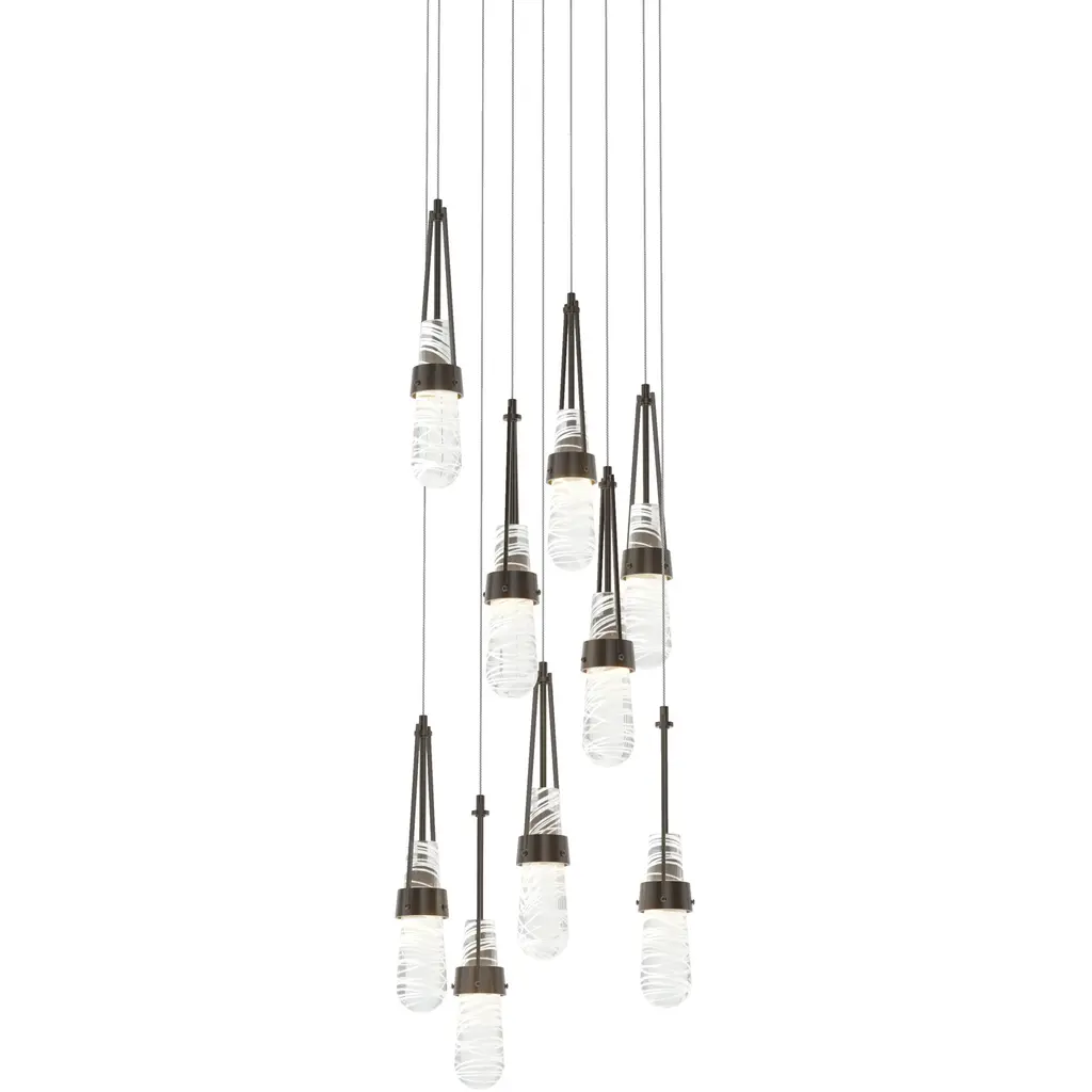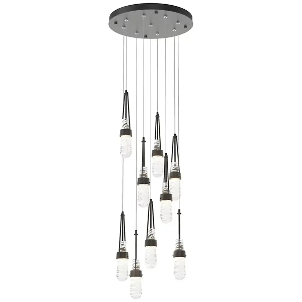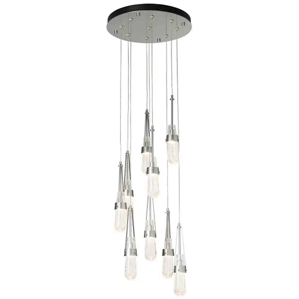 A staggeringly beautiful piece in a crowded space. The Link Blown Glass Round Multi-Light Pendant Pendant by Hubbardton Forge puts the finishing touches on any intimate indoor space. Handcrafted in Vermont, this hanging pendant light is made with nine pieces of blown glass that are in a staggered suspension formation. This modern pendant light is sloped ceiling adaptable and sports a durable powder-coated finish. Use this hanging pendant light to add depth and nuance to any kitchen or large-scale dining room space.