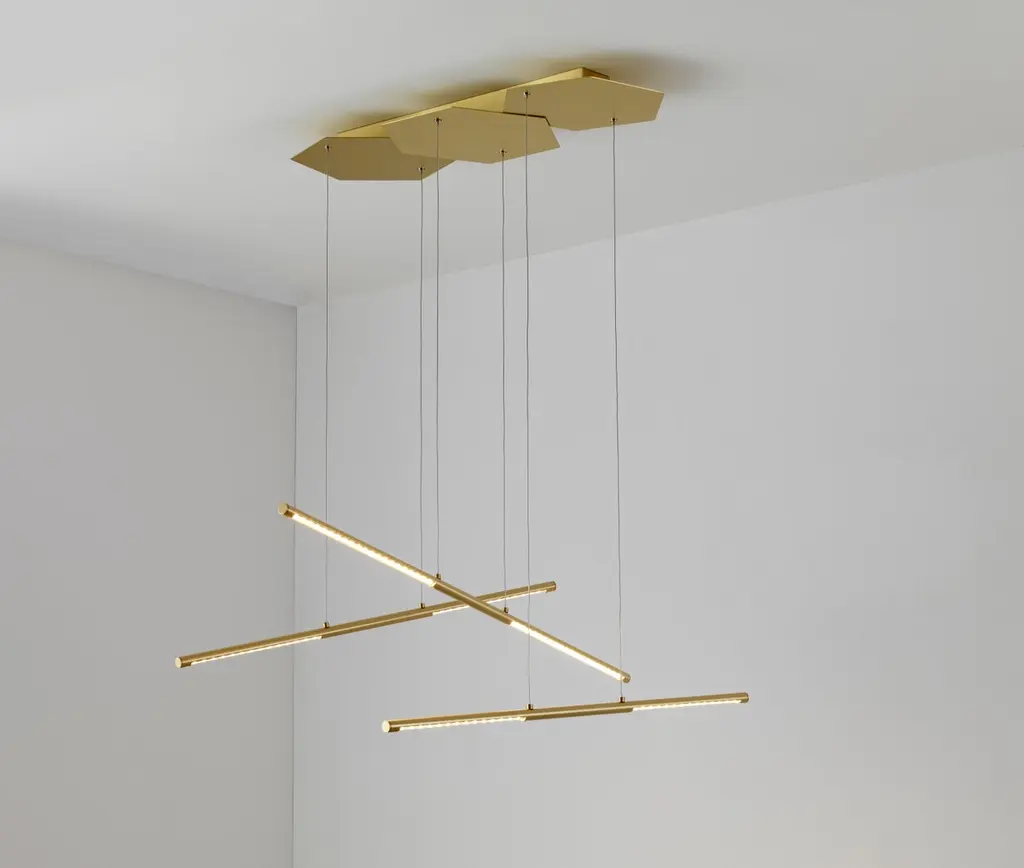Link pendant by Emilie CathelineauDimensions: D 59 x W 5.5 x H 100 cmMaterials: Solid brass, Satin Polycarbonate diffuser, Black textile cable (2m)Others finishes and dimensions are available.All our lamps can be wired according to each country. If sold to the USA it will be wired for the USA for instance.Simple and minimalist, the Link collection frames the light. Depending on the position of the light, the refined line can be fitted vertically or horizontally.CVL Luminaires, a company located in the Loire Valley, has more than five decades of experience in the design and manufacture of luminaires.The company ensures 100% French manufacturing. On the one hand, it offers a range of modular and adaptable catalog products, and on the other, it has a know-how that allows it to carry out fully customized projects.Your asset: flexibility. The factory allows production from one unit to another. In addition, the CVL team supports you in product development: study, design, standardization and production.