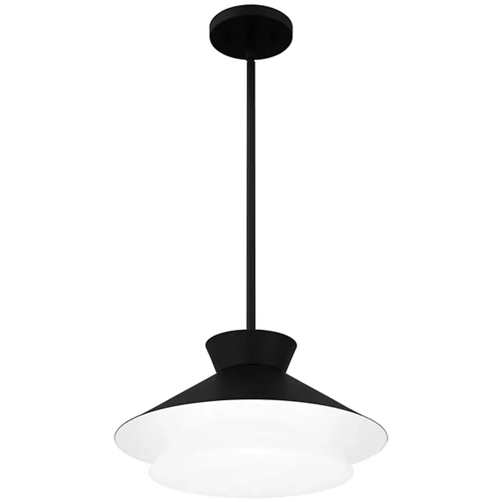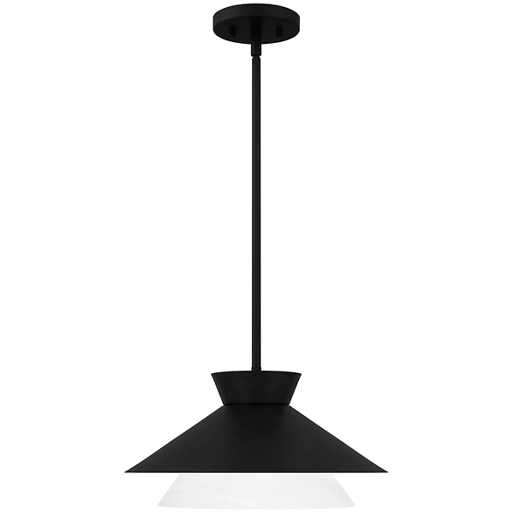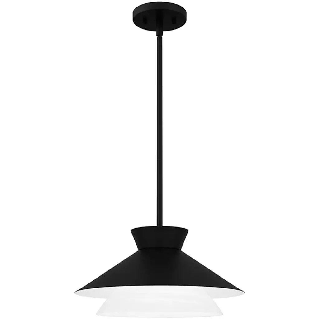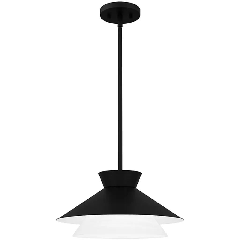 The Lionel Pendant from Quoizel is an intriguing luminary that commands attention with its bold design. This pendant is meticulously crafted, featuring a metal outer shade that adds an element of transitional elegance, beautifully contrasted by the inner white alabaster glass shade. Lionel boasts a geometric silhouette and a streamlined design, making it an apt addition to kitchens, bar areas, and more. The careful interplay of materials creates a visually dynamic fixture that elevates your interior décor.