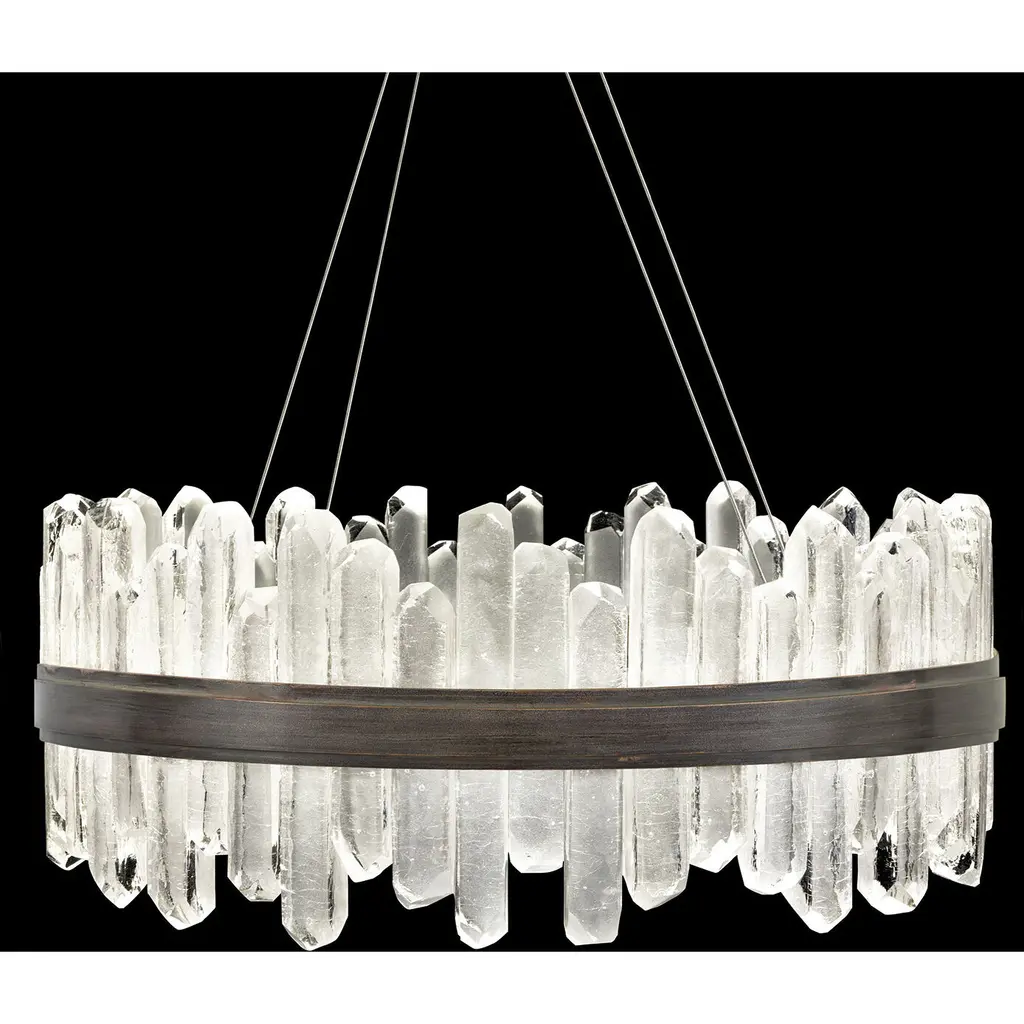 LED pendant influenced by the ephemeral appearance of illuminated rock crystal, which has been interpreted into handmade glassworks with the collaboration of the Fine Art studio glass master craftsmen. Formed of glass spires that mimic natural crystal for