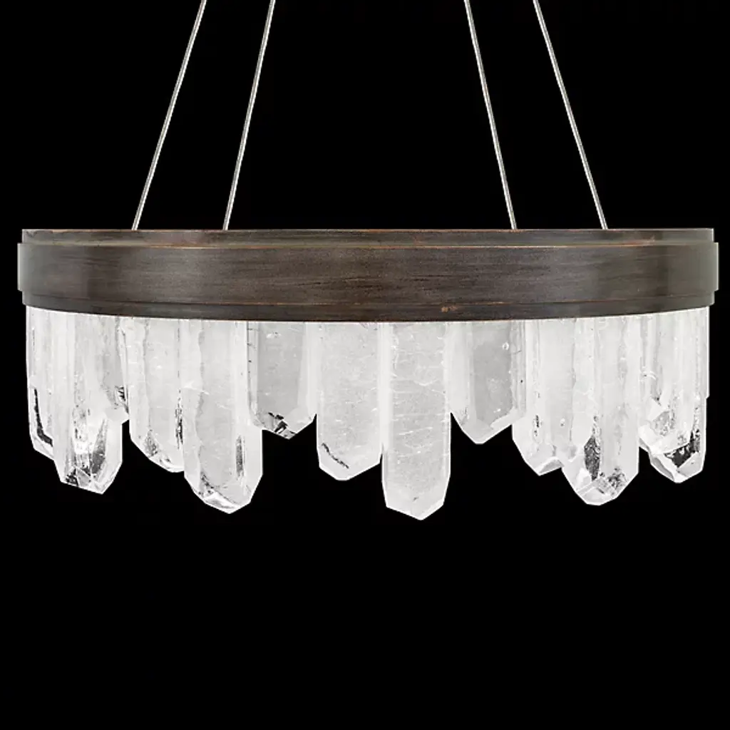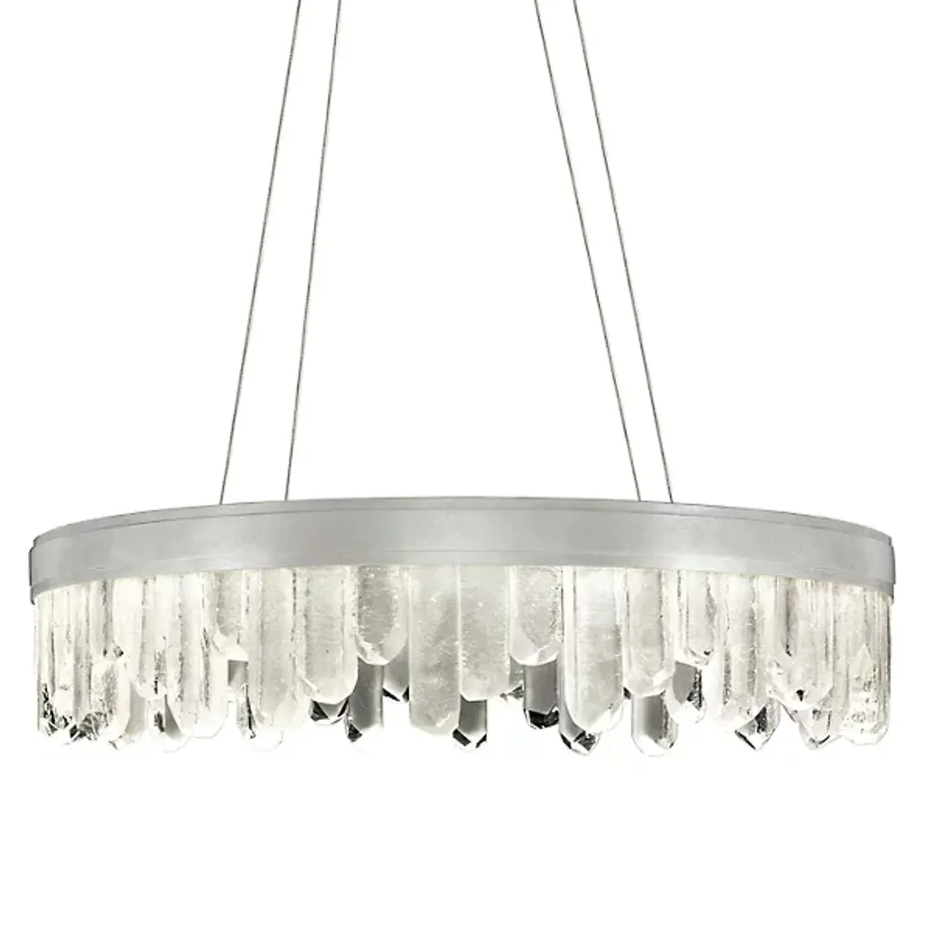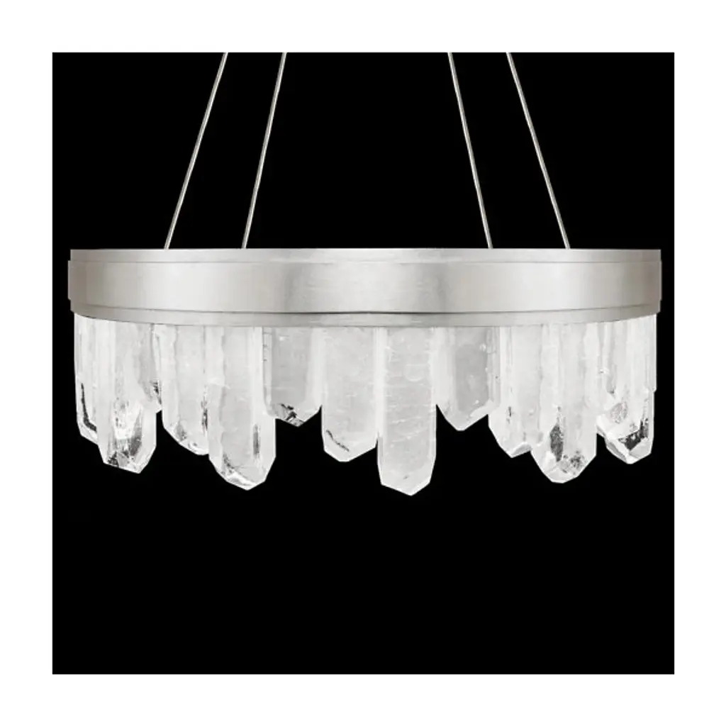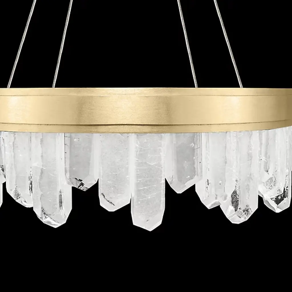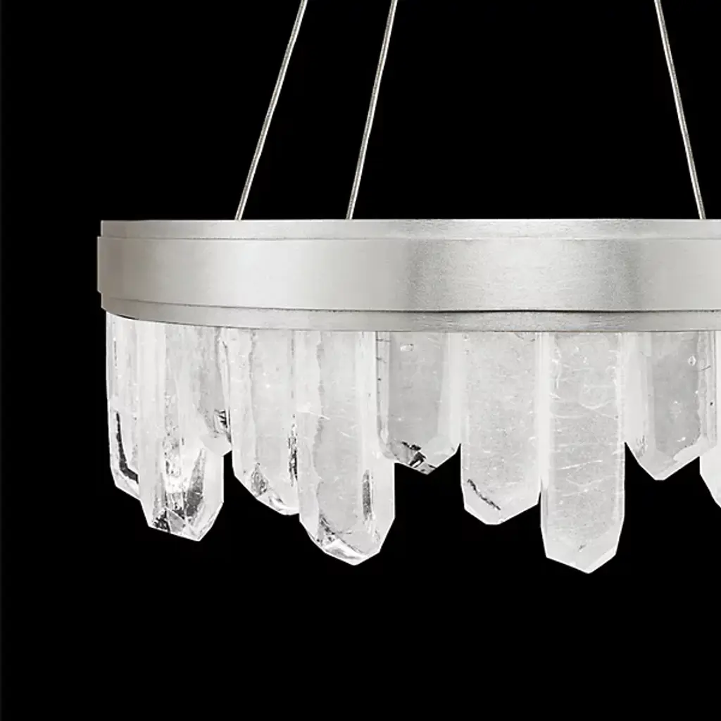 Displaying the beauty of natural stone and skill of master craftsmanship, the Lior Short Glass Pendant by Fine Art Lamps gives the home an enchanting accent. Glass spires are cut into crystal rock formations and set side by side at uneven heights for a striking silhouette. A smooth metal band anchors the glass and offers a sleek contrast to the raw nature of the faceted pieces. Integrated LED lights emit a warm and steady glow to illuminate the glass and bathe the room in a welcoming light.