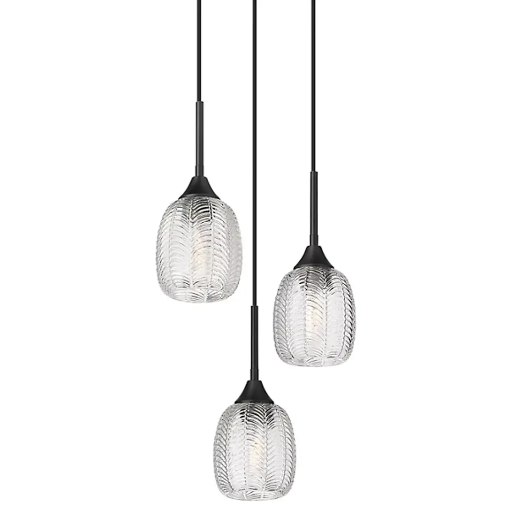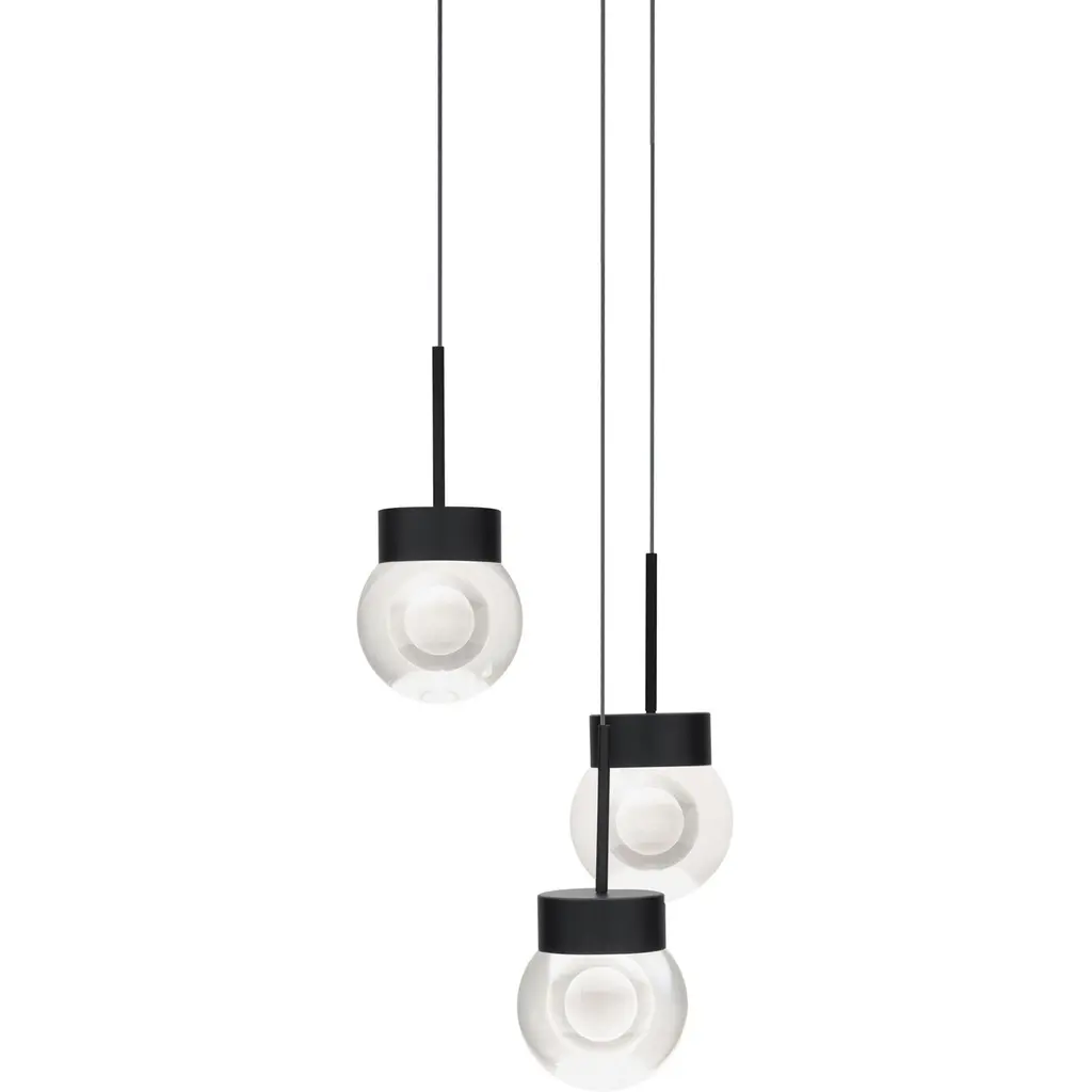 The SONNEMAN Lighting Liquid 3-Light Round Multi-Light Pendant puts an artisan spin on contemporary lighting. The glass form is an amorphous sculpture that has the softened look of melting glass. The visual weight of the piece is balanced with thin suspension cables, as well as minimal hardware. Each glass form contains an LED bulb, providing a single point source of light within the contoured volume.