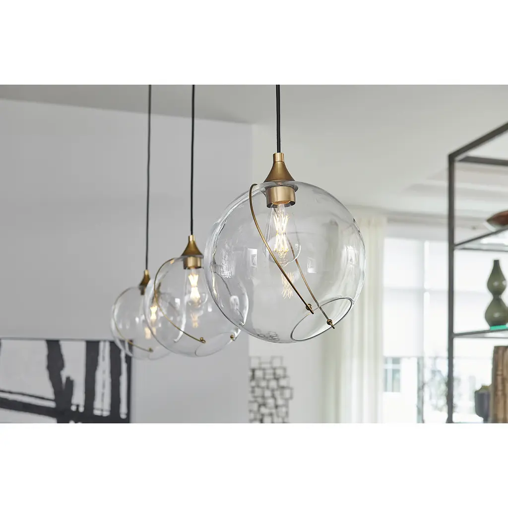 The Lisa McDennon Collection offers a striking mix of edgy, sculptural silhouettes that incorporate modern, organic elements and luxe materials, brought to life by her innovative and original point of view. Mesmerizingly asymmetrical with a mid-century modern flair, Skye showcases a single or cluster of glass globes, each encircled with a slender ring. Each opening is off-center and the globes fall to different lengths, with Heritage Brass or Black details pulling the look together perfectly.