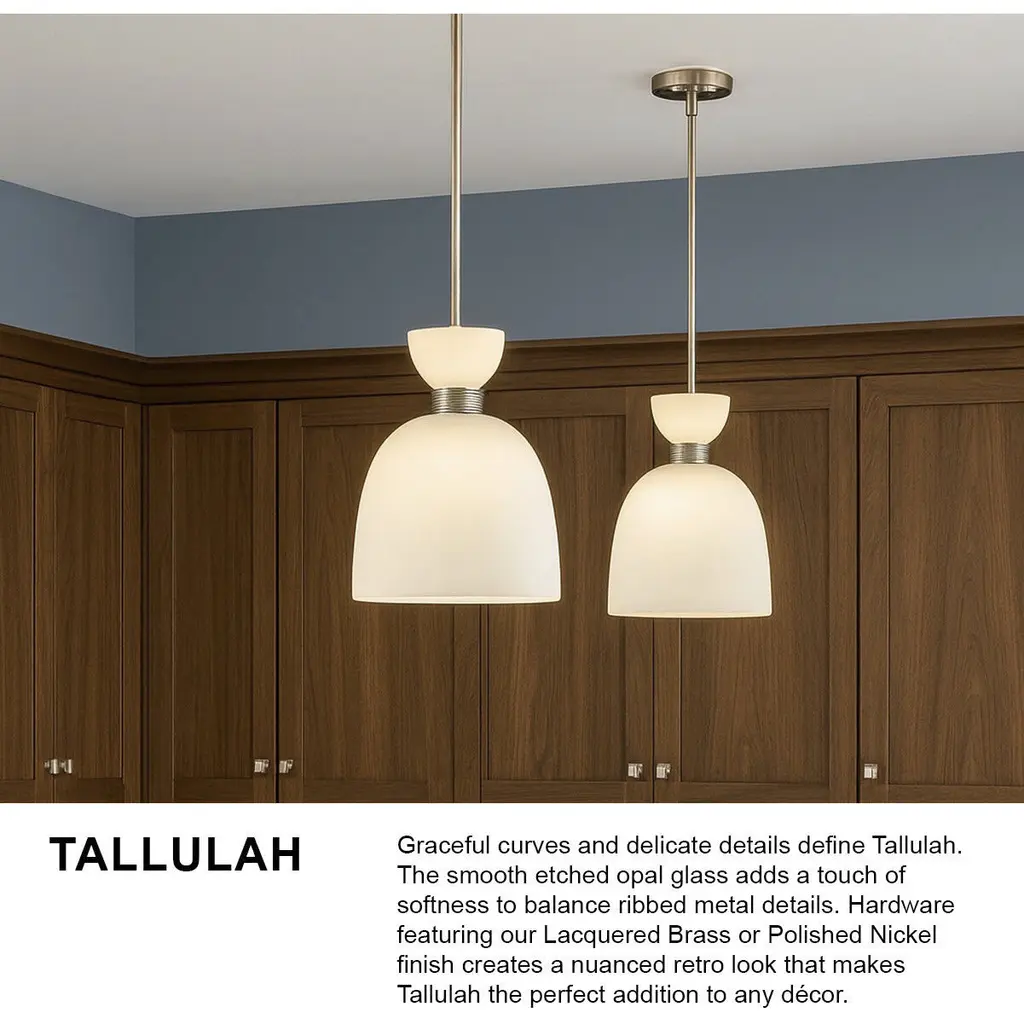 The Lisa McDennon Collection offers a striking mix of edgy, sculptural silhouettes that incorporate modern, organic elements and luxe materials, brought to life by her innovative and original point of view. Graceful curves and delicate details define Tallulah. The smooth etched opal glass adds a touch of softness to balance ribbed metal details. Hardware featuring our Lacquered Brass or Polished Nickel finish creates a nuanced retro look that makes Tallulah the perfect addition to any décor.
