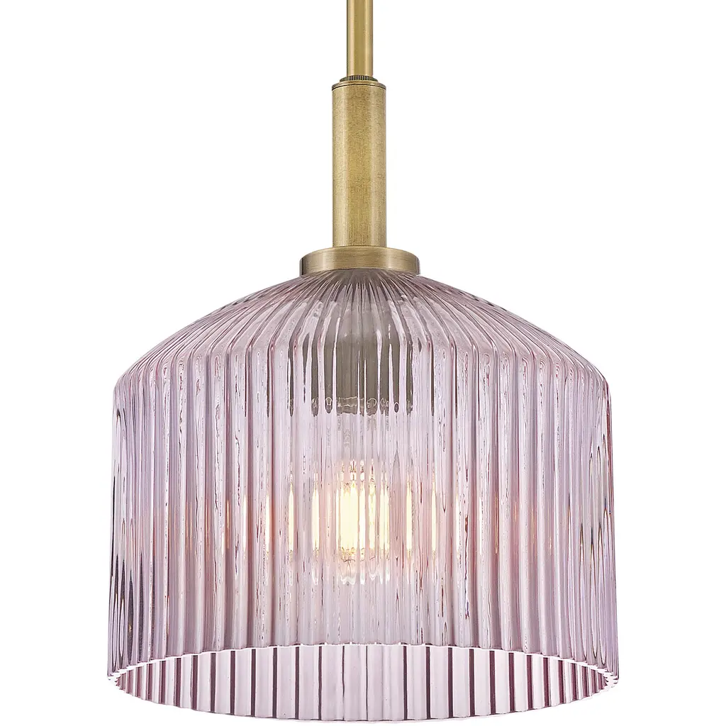 A chic throwback to vintage glassware and retro colors, Lisettes ribbed shade makes a cool statement in Rose, Smoked, or Clear glass. The subtle texture casts enchanting refractions throughout your space while a classic brass finish blends perfectly into any decor style.