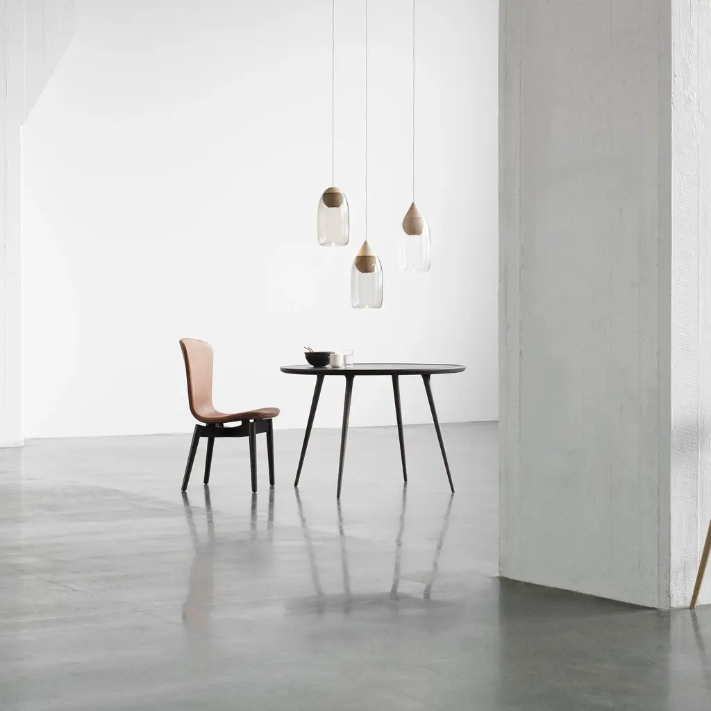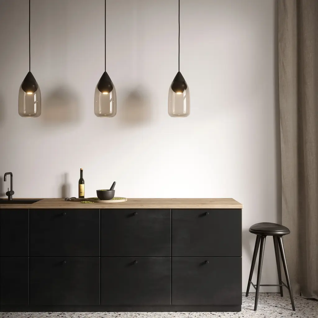 Liuku is a contemporary pendant light that reflects Finnish designer Maija Puoskari's ongoing fascination with nature. Originally trained as a florist, Maija abstracts a flower shape with her combination of a wooden drop fixture with a mouth-blown glass shade. The sustainably produced, FDC-certified alder wood component hides a long-life LED light source while the Liuku shade is available in either clear glass or striking tones of smoke or gradient violet. For additional versatility, the wooden fixture can be used on its own, as a single pendant or in clusters, for both residential and commercial spaces.