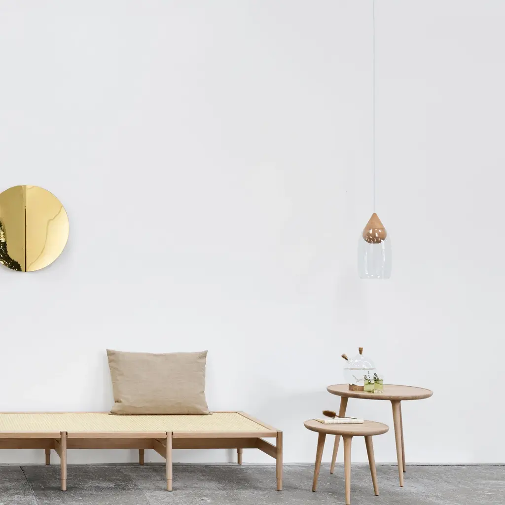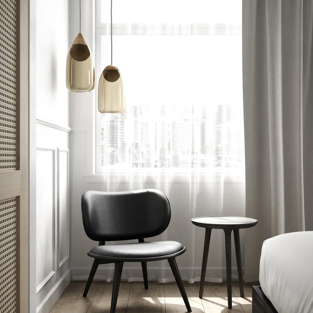 Liuku is a contemporary pendant light that reflects Finnish designer Maija Puoskari's ongoing fascination with nature. Originally trained as a florist, Maija abstracts a flower shape with her combination of a wooden drop fixture with a mouth-blown glass shade. The sustainably produced, FDC-certified alder wood component hides a long-life LED light source while the Liuku shade is available in either clear glass or striking tones of smoke or gradient violet. For additional versatility, the wooden fixture can be used on its own, as a single pendant or in clusters, for both residential and commercial spaces.