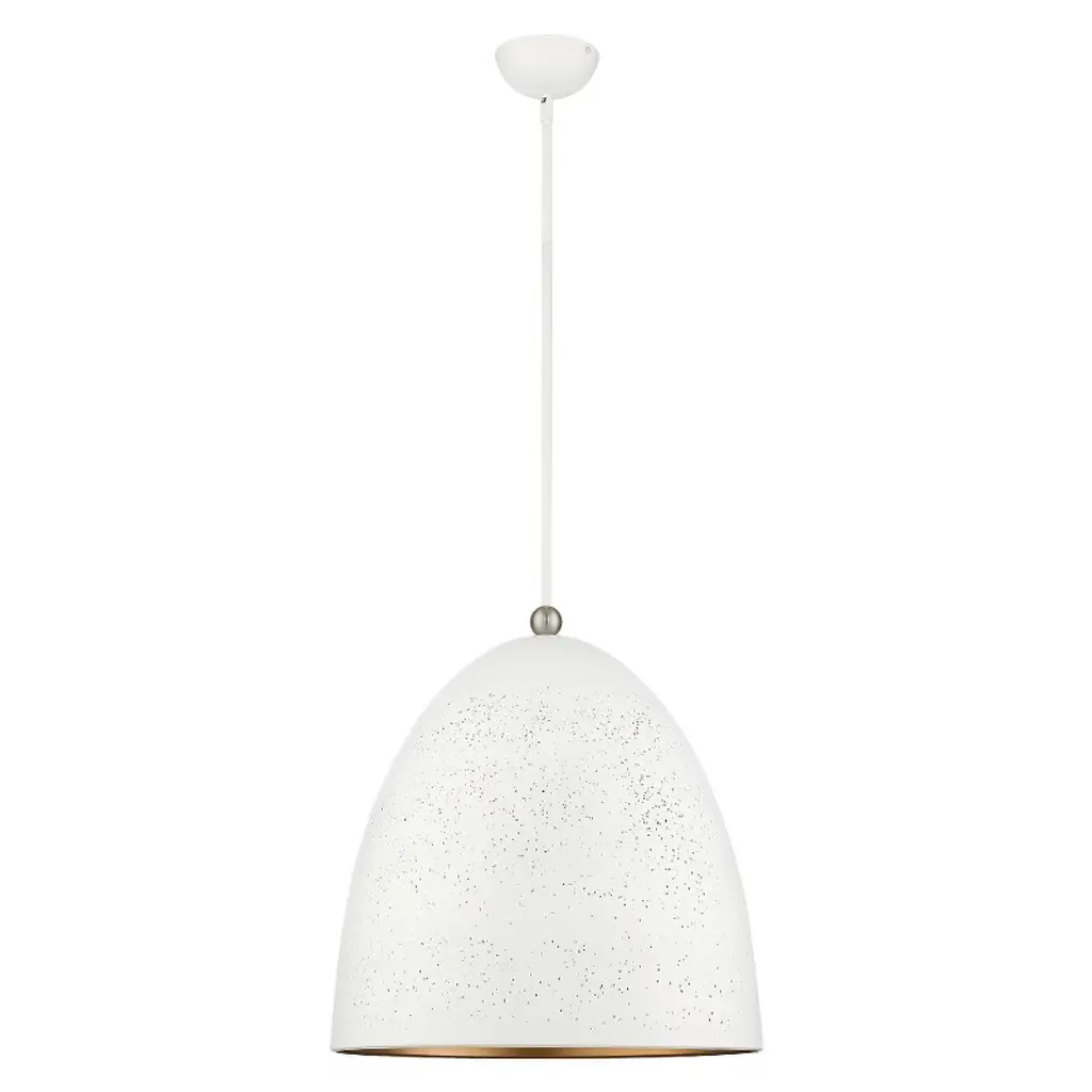 Collection: Arlington, Material: Steel, Finish Color: White/Brushed Nickel, Width: 19", Height: 31", Hanging Method: Stem, Lamping Type: Incandescent, Number Of Bulbs: 3, Wattage: 180 Watts, Moisture Rating: Dry Rated, Desc: A pendant that makes a bold statement in your kitchen, bath or bar area, we present the Arlington. The dynamic design of white outside, gold inside and brushed nickel accents give this mini pendant an innovative and modern look and feel. No. of Rods: 3 / Canopy Included: Yes / Shade Included: Yes / Canopy Diameter: 5.13 x 2 / Rod Length(s): 18.00. ,