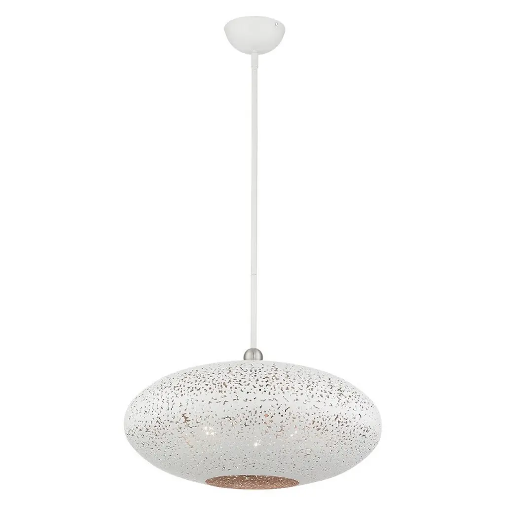 Collection: Charlton, Material: Steel, Finish Color: White/Brushed Nickel, Width: 20", Height: 20.75", Hanging Method: Stem, Lamping Type: Incandescent, Number Of Bulbs: 3, Wattage: 180 Watts, Moisture Rating: Dry Rated, Desc: A pendant that makes a bold statement in your kitchen, bath or bar area, we present the Charlton. The dynamic design of white outside, gold inside and brushed nickel accents give this mini pendant a transitional look and feel. No. of Rods: 3 / Canopy Included: Yes / Shade Included: Yes / Canopy Diameter: 5.13 x 2 / Rod Length(s): 18.00. ,