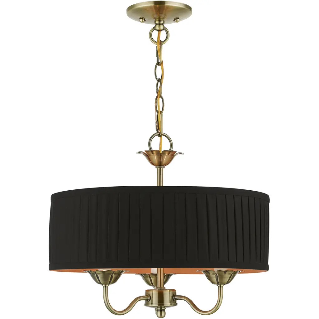 Collection: Edinburgh, Material: Steel, Finish Color: English Bronze, Width: 23", Height: 14", Hanging Method: Chain, Chain Length: 36", Lamping Type: Incandescent, Number Of Bulbs: 5, Wattage: 300 Watts, Moisture Rating: Dry Rated, Desc: The five-light Edinburgh pendant chandelier combines floral details and elements to create an updated look. The hand-crafted off-white fabric hardback pleated drum shade is set off by an inner silky white fabric that combines with chandelier-like antique brass finish sweeping arms which creates a versatile effect. Perfect fit for the living room, dining room, kitchen or bedroom. Canopy Included: Yes / Canopy Diameter: 5.13 / Chain Length: 36.00 / Shade Included: Yes / Shade Dimensions: 23 x 5.5. ,