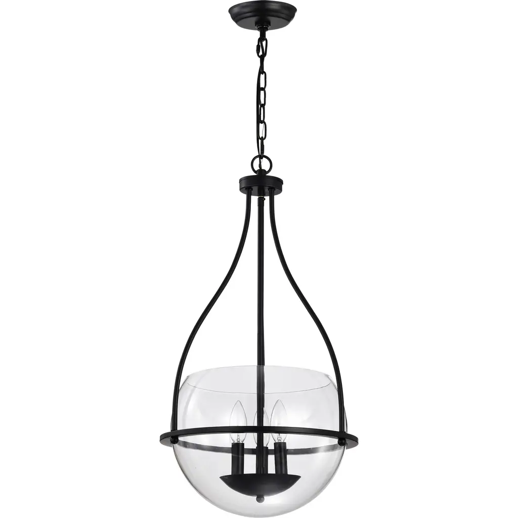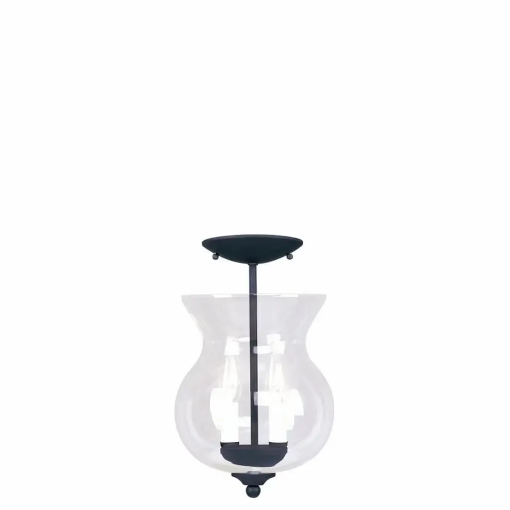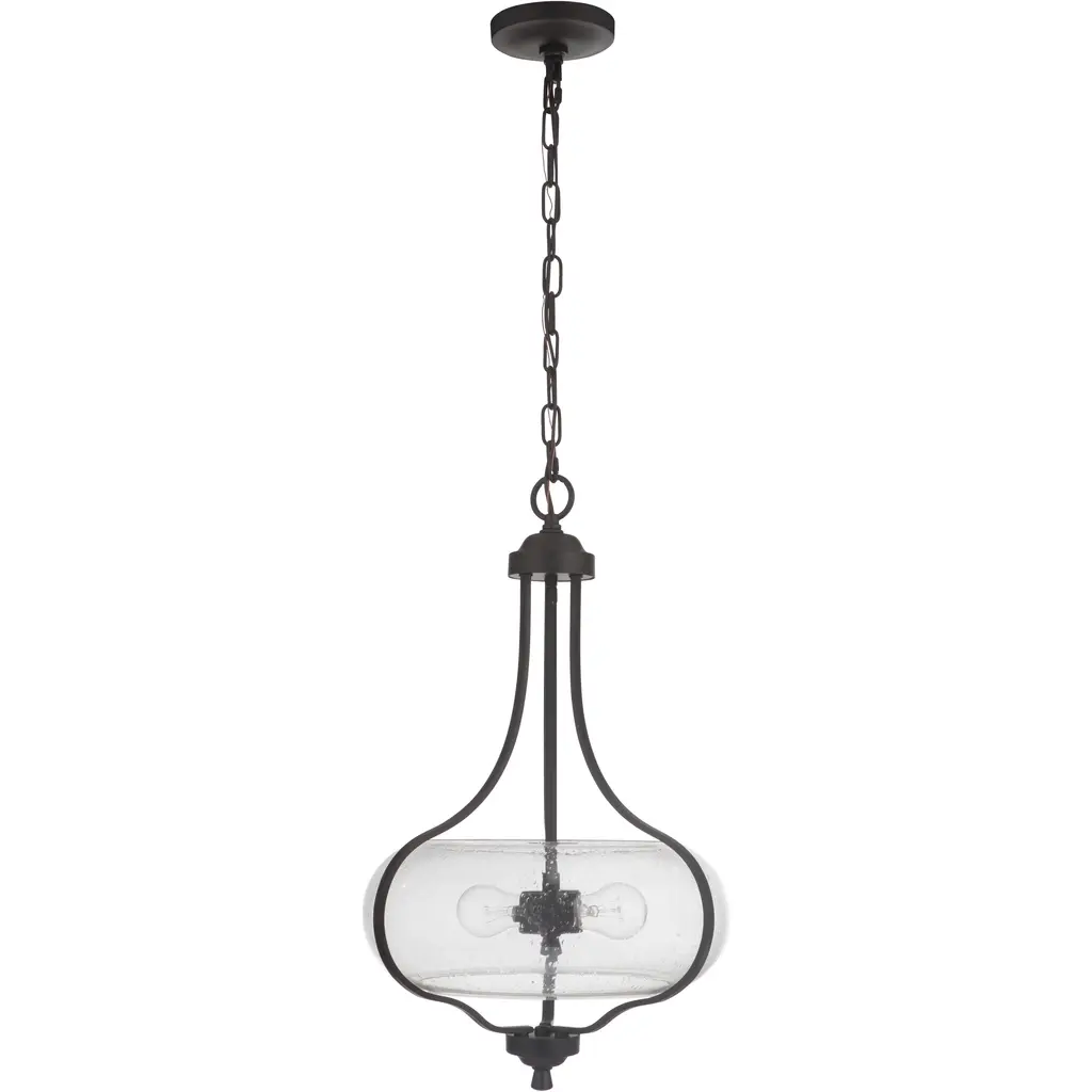 Collection: Heritage, Material: Steel, Finish Color: Black, Width: 8.25", Height: 14", Hanging Method: Chain, Chain Length: 36", Lamping Type: Incandescent, Number Of Bulbs: 2, Wattage: 120 Watts, Moisture Rating: Dry Rated, Desc: The Legacy collection offers a chic update to traditional style lighting. This pendant/semi-flush mount light design comes in a beautiful black finish with a traditional glass bell jar adding style.,