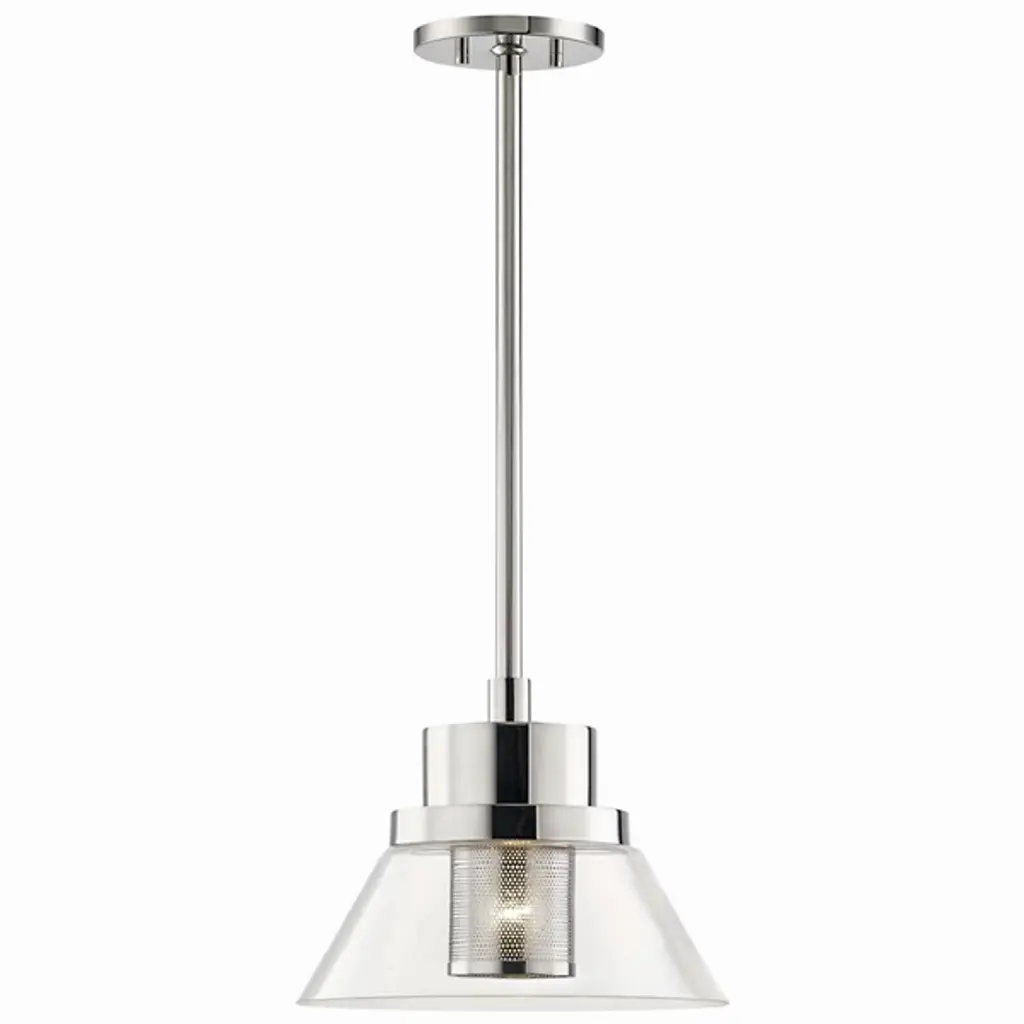 Collection: Pendants, Material: Steel, Finish Color: Brushed Aluminum, Width: 9.5", Height: 11", Hanging Method: Cord, Lamping Type: Incandescent, Number Of Bulbs: 1, Wattage: 60 Watts, Moisture Rating: Dry Rated, Desc: This single light pendant suspends simply, and it's great solo over focus points or set in pairs or trios over long counter tops and islands. It is shown in a brushed nickel finish with clear with a shiny white finish inside the perforated design shade. Canopy Included: Yes / Shade Included: Yes / Canopy Diameter: 4.75 x 1.25. ,