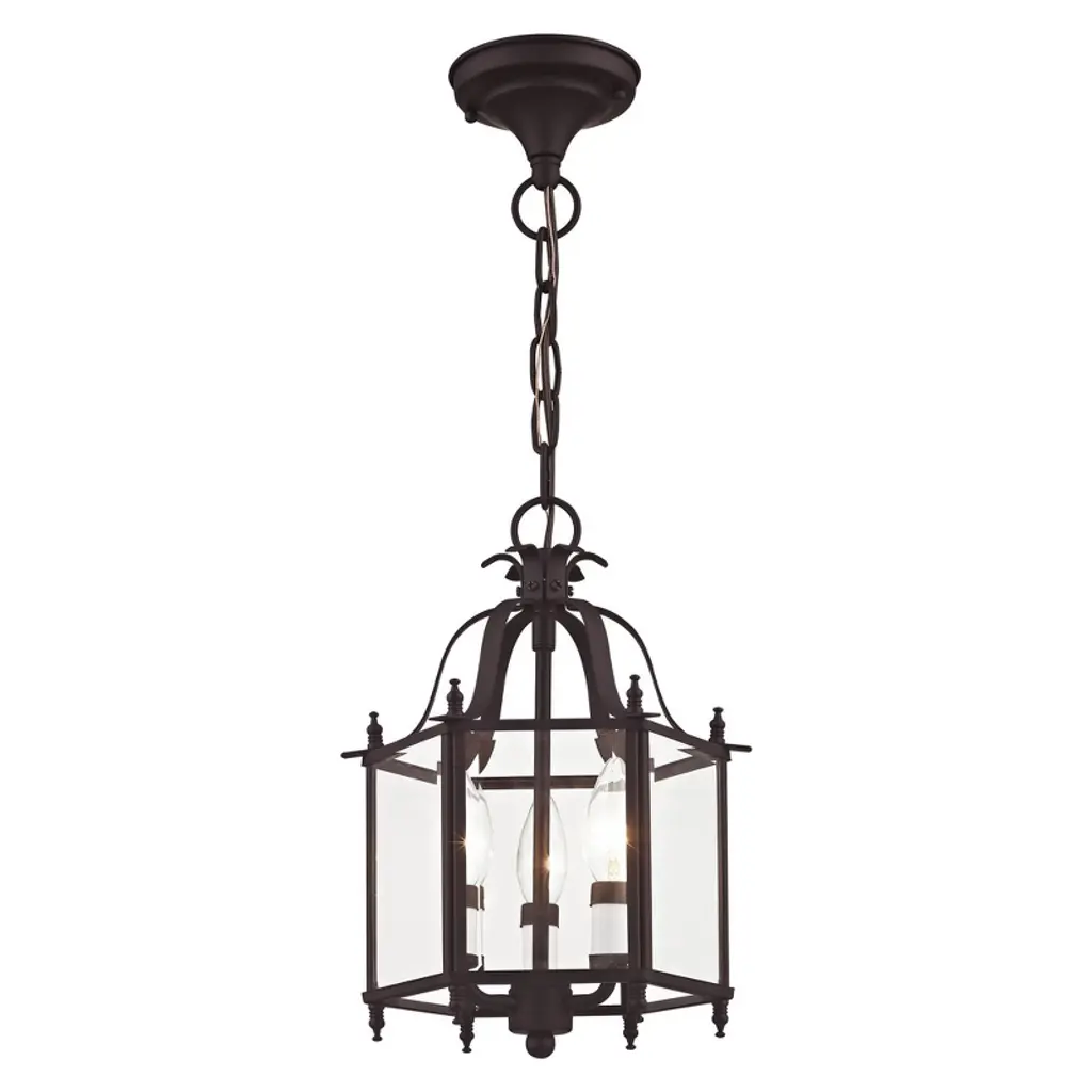 Collection: Westover, Material: Brass, Finish Color: Bronze, Width: 9", Height: 15", Length: 9", Chain Length: 36", Lamping Type: Incandescent, Number Of Bulbs: 2, Wattage: 60 Watts, Moisture Rating: Dry Rated, Desc: Inspired by the historic look and romantic feel of gas-burning lamps, the Westover collection is reminiscent of antique gas lights still popular in Southern cities like Charleston and New Orleans. This solid brass piece features two lights behind large panes of clear beveled glass. Canopy Included: Yes / Shade Included: Yes / Canopy Diameter: 5.00. ,