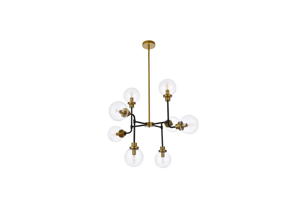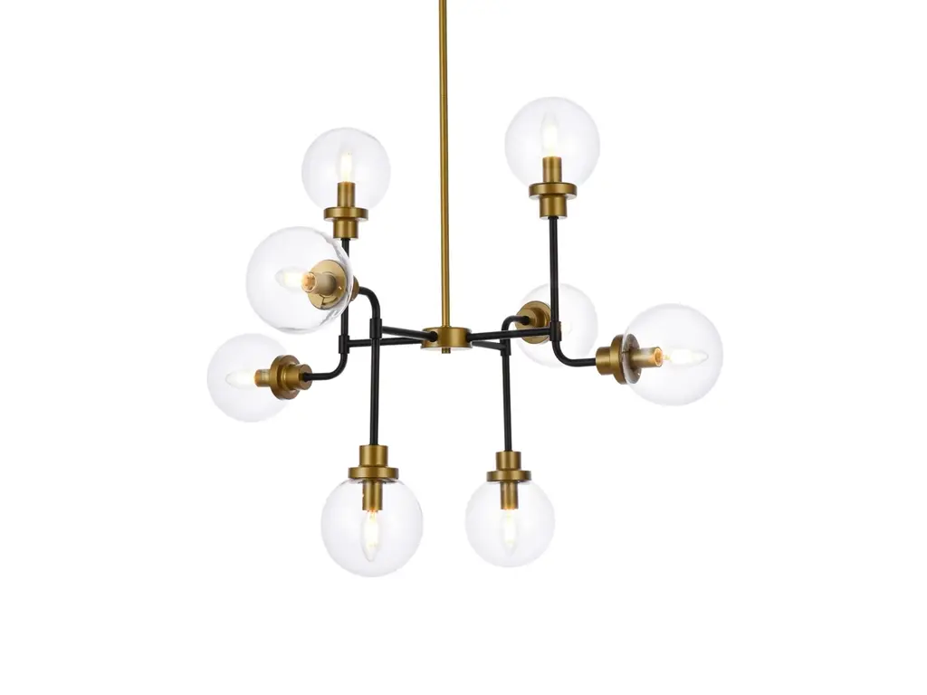Hanson 8 lights pendant in black with brass with clear shade is the perfect fixture for over a kitchen island, over a dining table, or use in any room to make a big statement. This pendant elevates the look of any space.