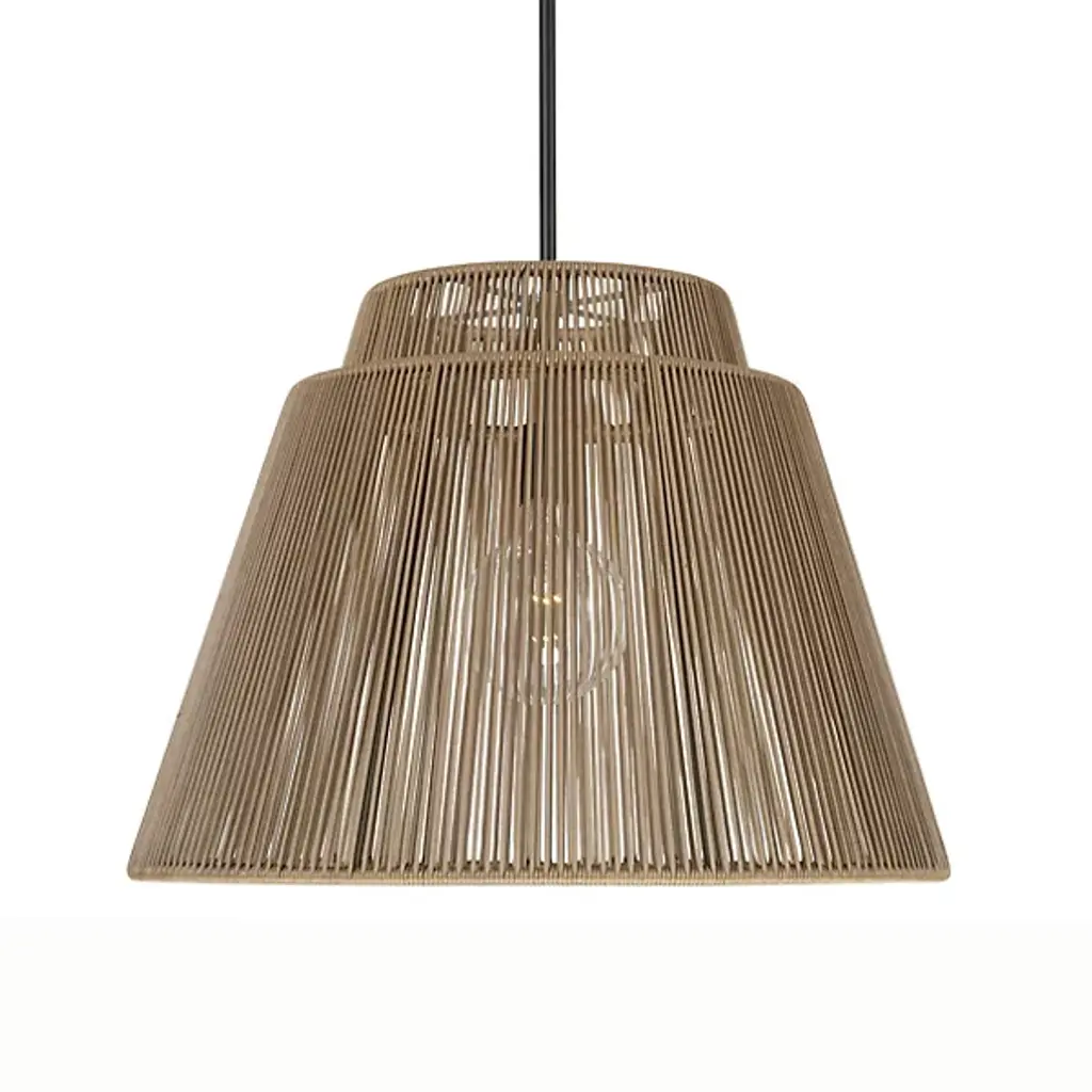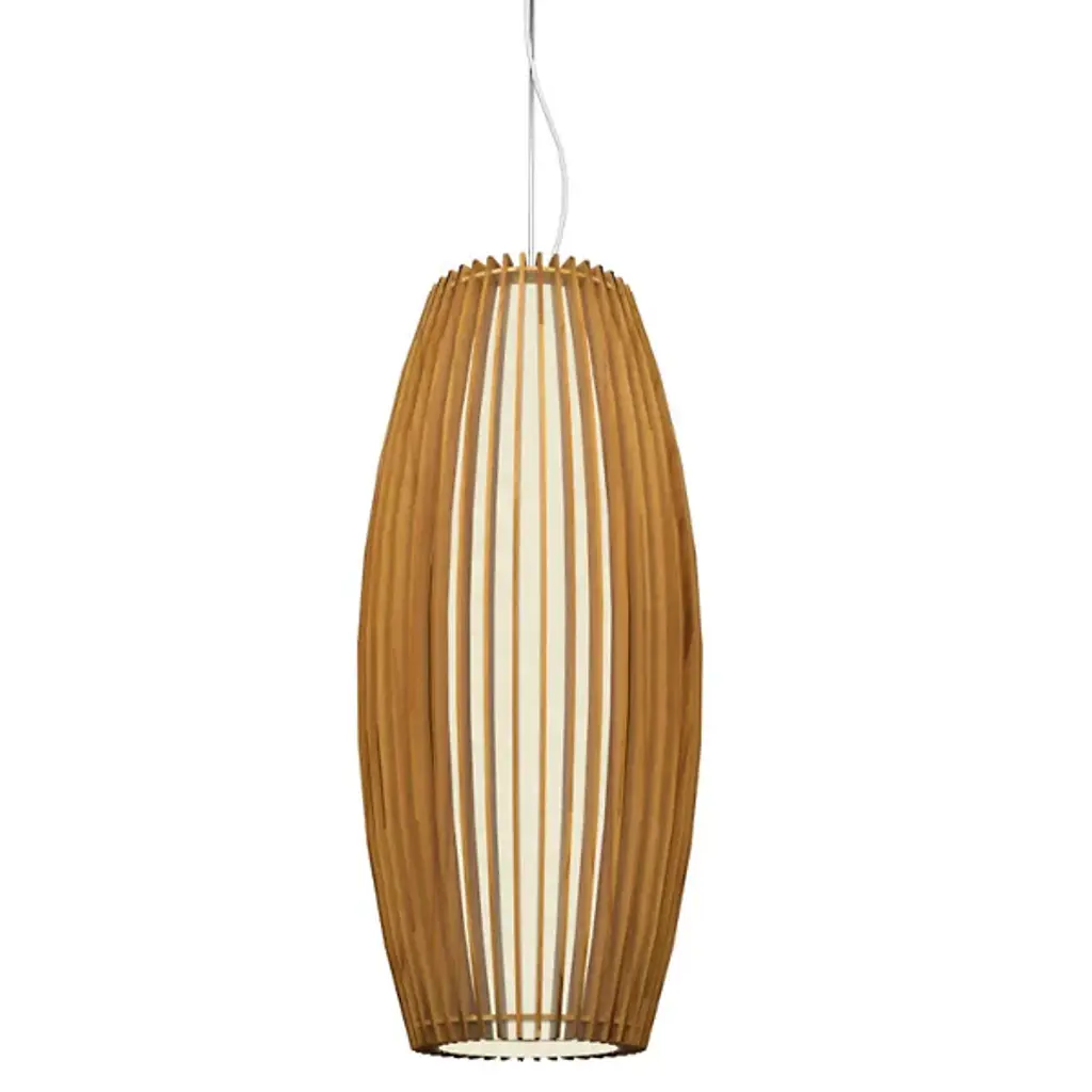 Natural meets industrial in the Living Hinges Pendant from Accord Lighting. Designed after the patterning often seen on flexible hinges of the same name, this fixture presents an intricate netting of wood-finished banding that wraps around a conical shade. Its acrylic diffuser offers a contrasting background while filtering the light that emanates from a single bulb inside. Its laser-cut aesthetic brings a clean edge to a room, while its natural tones offer a more organic touch.