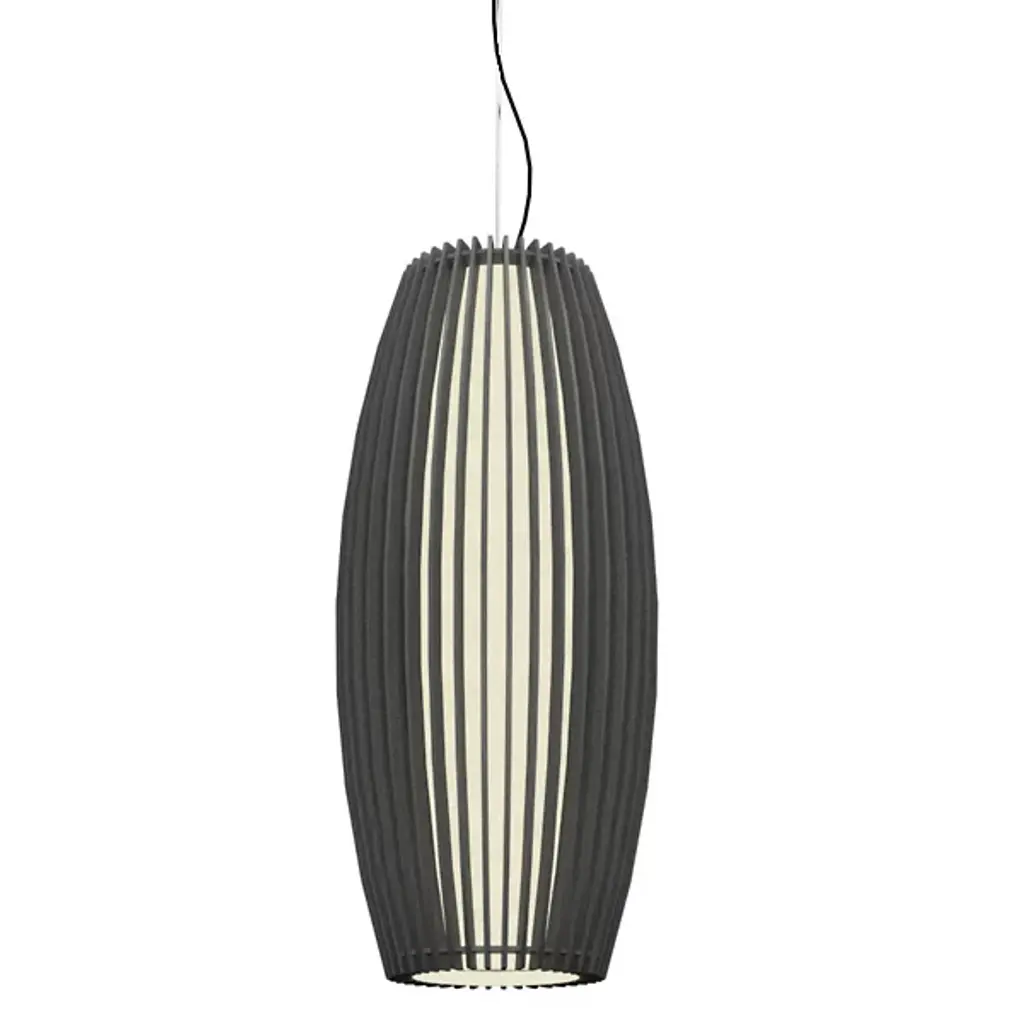 Natural meets industrial in the Living Hinges Pendant from Accord Lighting. Designed after the patterning often seen on flexible hinges of the same name, this fixture presents an intricate netting of wood-finished banding that wraps around a conical shade. Its acrylic diffuser offers a contrasting background while filtering the light that emanates from a single bulb inside. Its laser-cut aesthetic brings a clean edge to a room, while its natural tones offer a more organic touch.