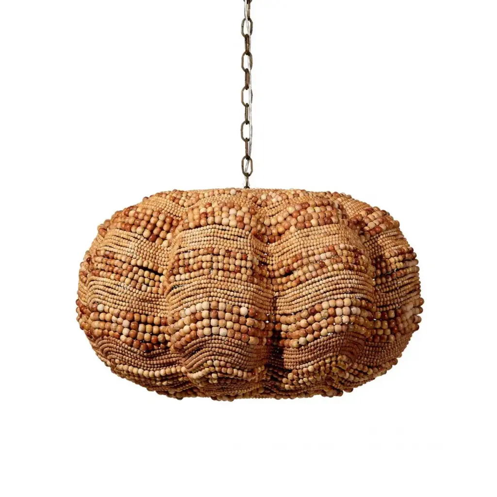 Create a beautiful and cozy bedroom with the Liz Large Nursery Chandelier - a breathtaking bedroom or nursery chandelier that is inspired by centuries-old Zulu beading tradition. Crafted by a studio dedicated to preserving traditional Zulu craftsmanship, this pretty nursery chandelier is handcrafted by skilled Zulu artisans using only the finest wood beads and yarn, resulting in a unique and high-end aesthetic. , The modern nursery lighting is not just a lighting fixture, it is a work of art. The balanced yet bold wood beaded outer pattern and solid woven interior are meticulously crafted to create a unique and high-end addition to any baby's room. What sets this modern nursery chandelier apart is its versatility. With an adjustable cord, this chandelier can be customized to fit a variety of ceiling heights, ensuring that it will fit perfectly in any room. Use as a beautiful bedroom chandelier or foyer entry chandelier. As a 54kibo exclusive, you won't find this stunning chandelier anywhere else. So if you're looking for the best bedroom chandeliers and unique nursery light fixtures, look no further than the Liz large nursery chandelier.