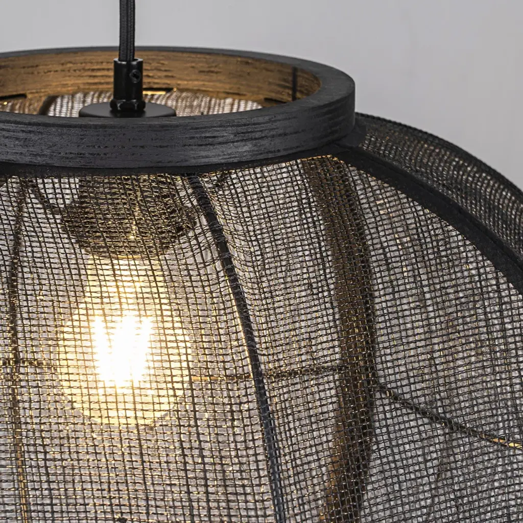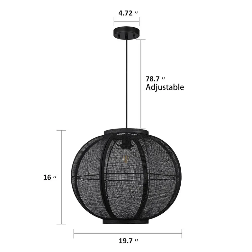 Llhzsy 19 7/10" Black Hemp Rope Pendant Chandelier, 1-lihgt Lantern Fixture For Dining Room, Kitchen, Or Foyer