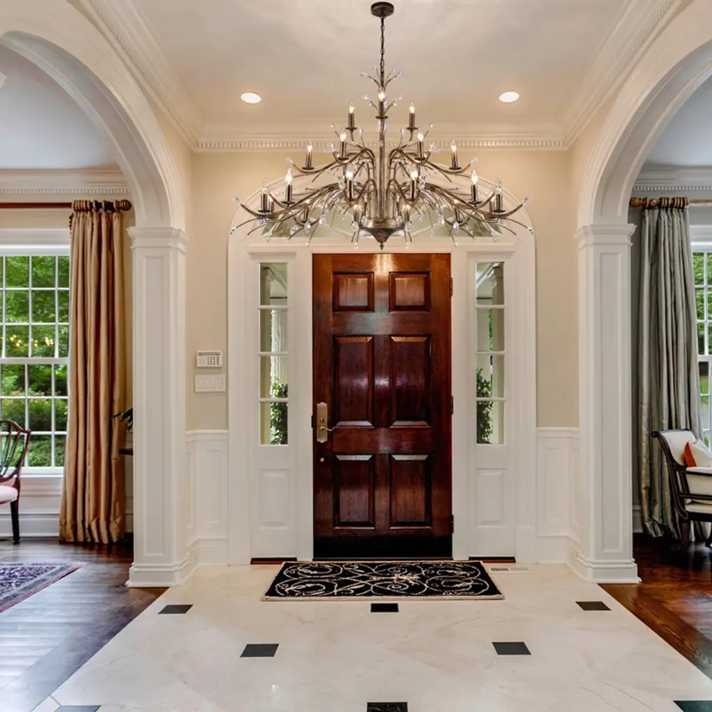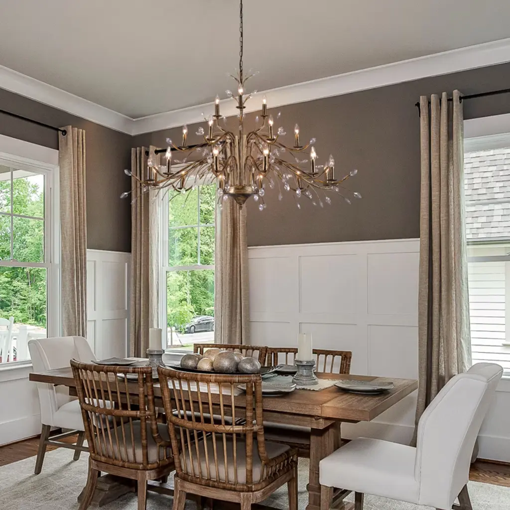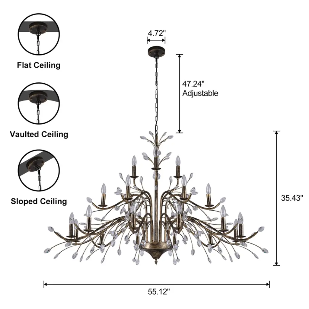 Bring timeless elegance to your home with this vintage-inspired crystal branch chandelier. Featuring candle-style lights, sparkling crystal accents, and antique bronze or brushed nickel finishes, it’s ideal for creating a warm, luxurious atmosphere. The adjustable chain and sloped ceiling compatibility offer flexible installation for any room.