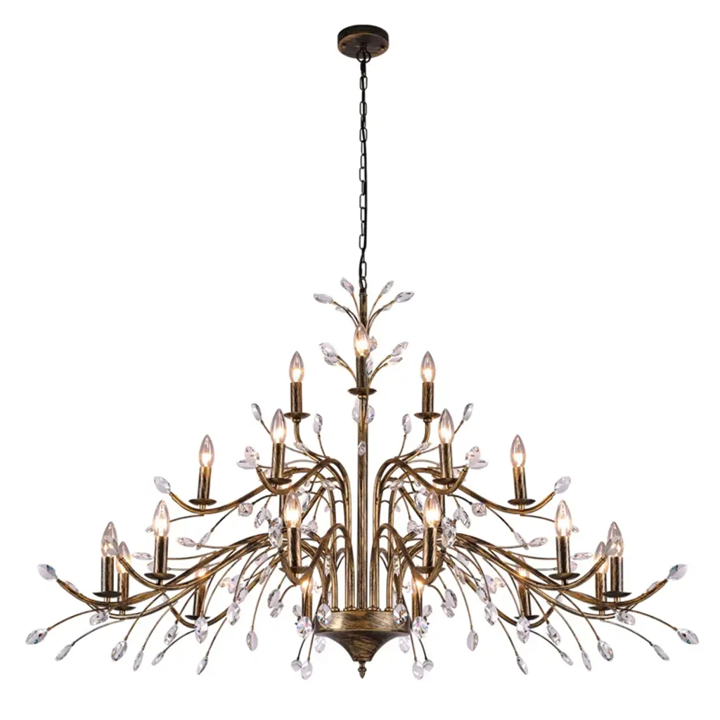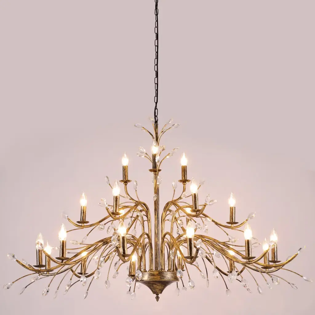 Llhzsy 21-lights Farmhouse Retro Tree Branch Crystal Chandelier Candle-style Pendant Light