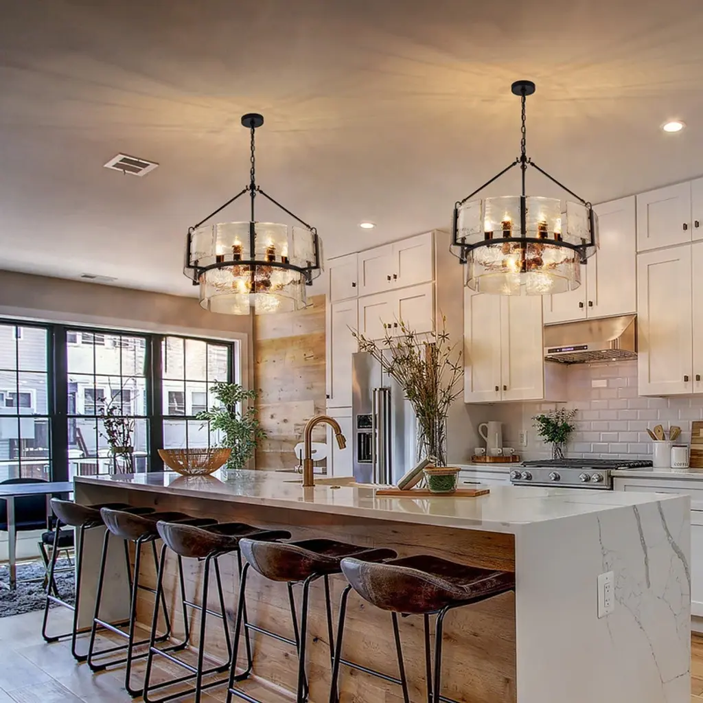 Llhzsy 27 1/2"w 2-tier Handmade Glass Pendant Chandelier 9-light Fixture For Dining Room Kitchen Island-black