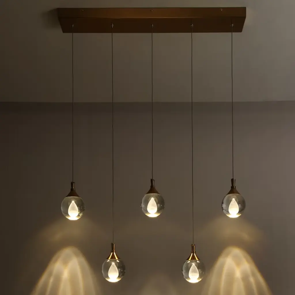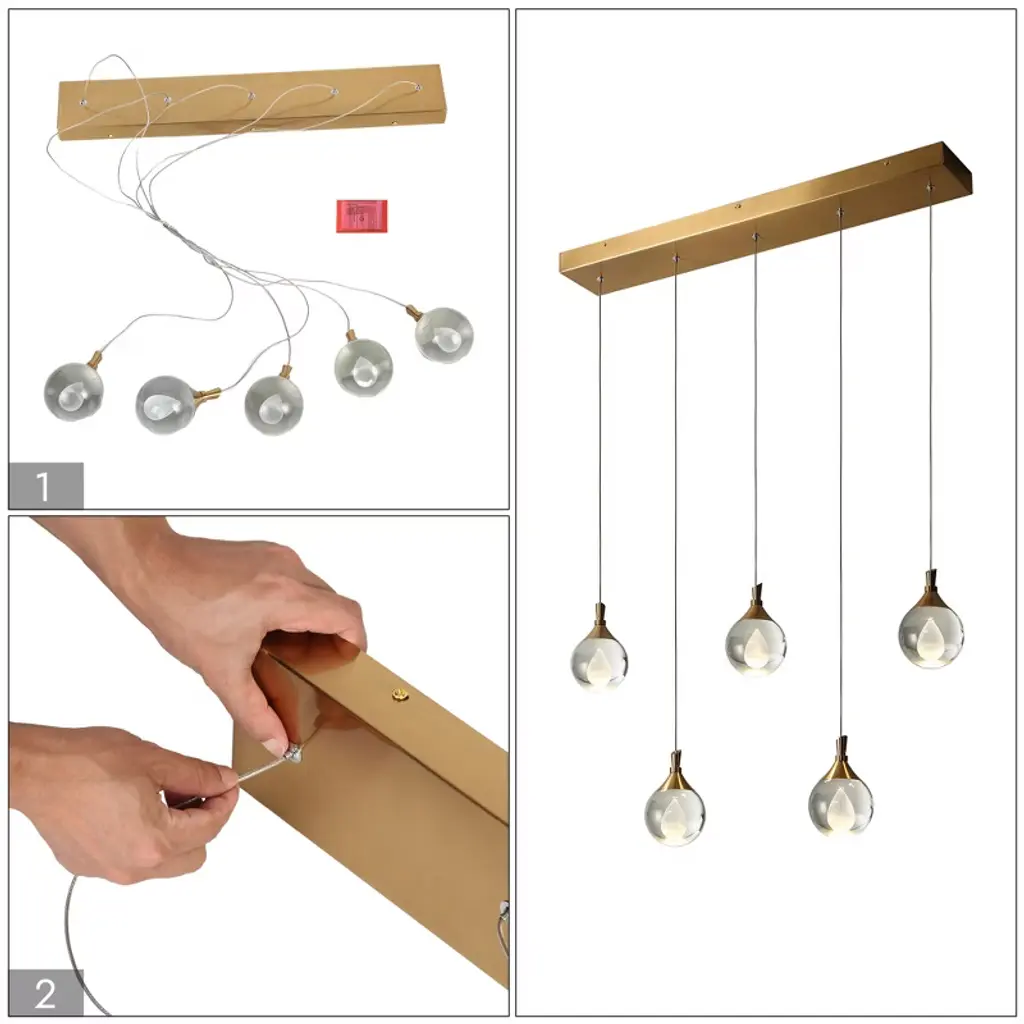 Lnc 30.3-in Dandelion Linear Kitchen Island Pendant – 5-light Integrated Led, Gold With Glass, Modern Luxury