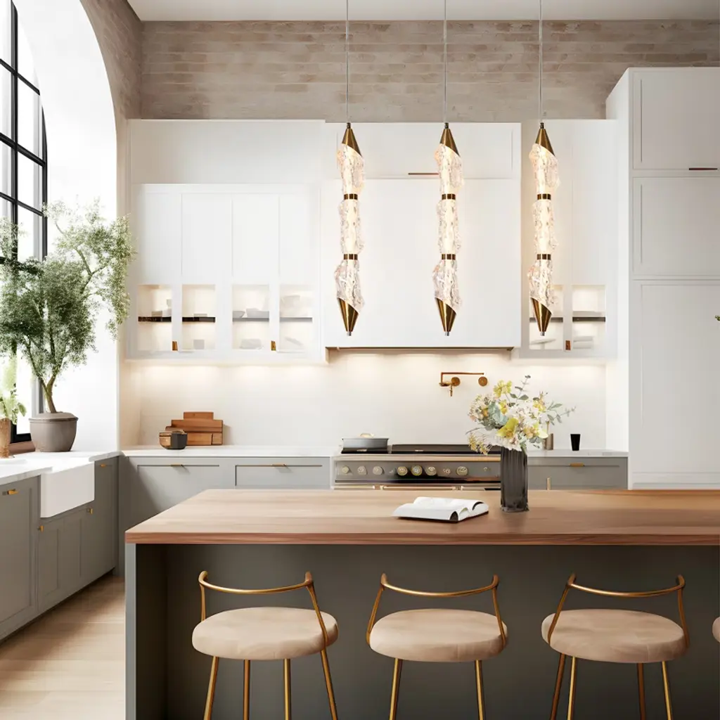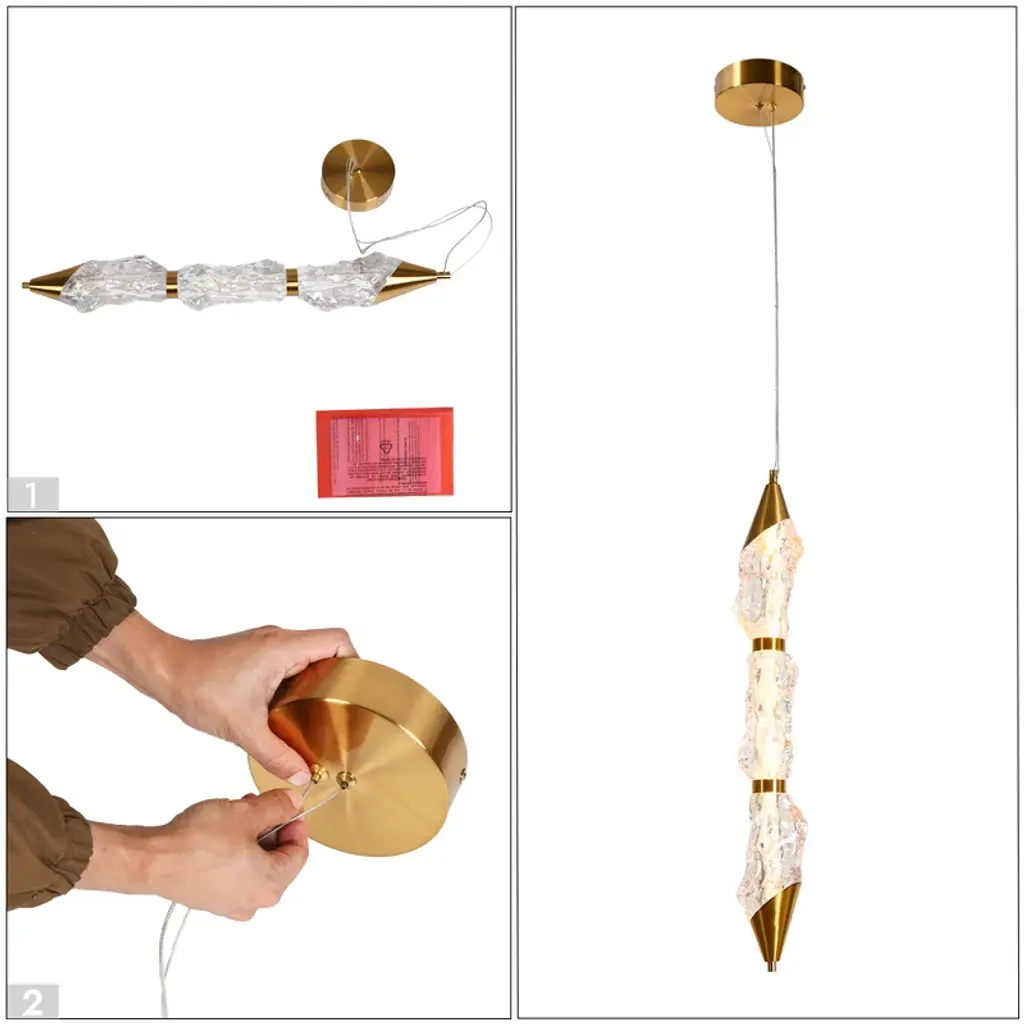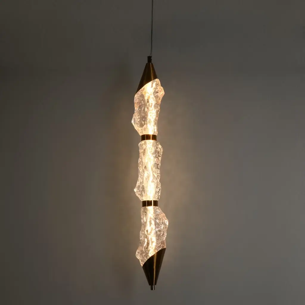 The LNC Luxury Crystal LED Mini Pendant captivates with its slender, elongated form, showcasing intricately textured resin segments framed by gleaming brass accents. This mini yet striking lighting piece radiates modern elegance and timeless charm, ideal for enhancing dining rooms, kitchen islands, or intimate lounge areas. Its graceful glow creates an inviting ambiance, leaving a lasting impression on guests and elevating your everyday living experience.