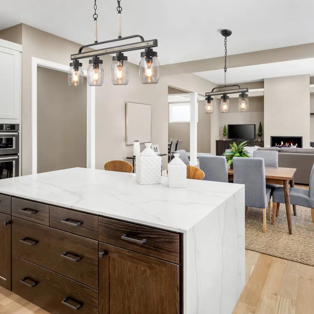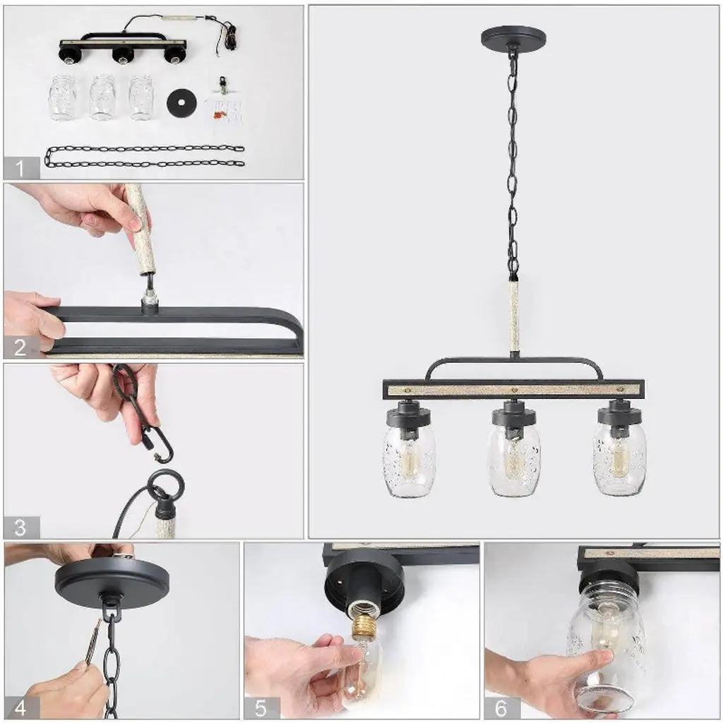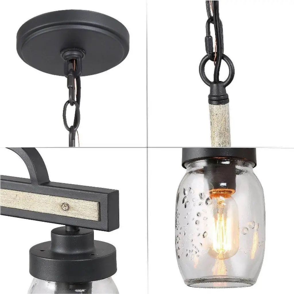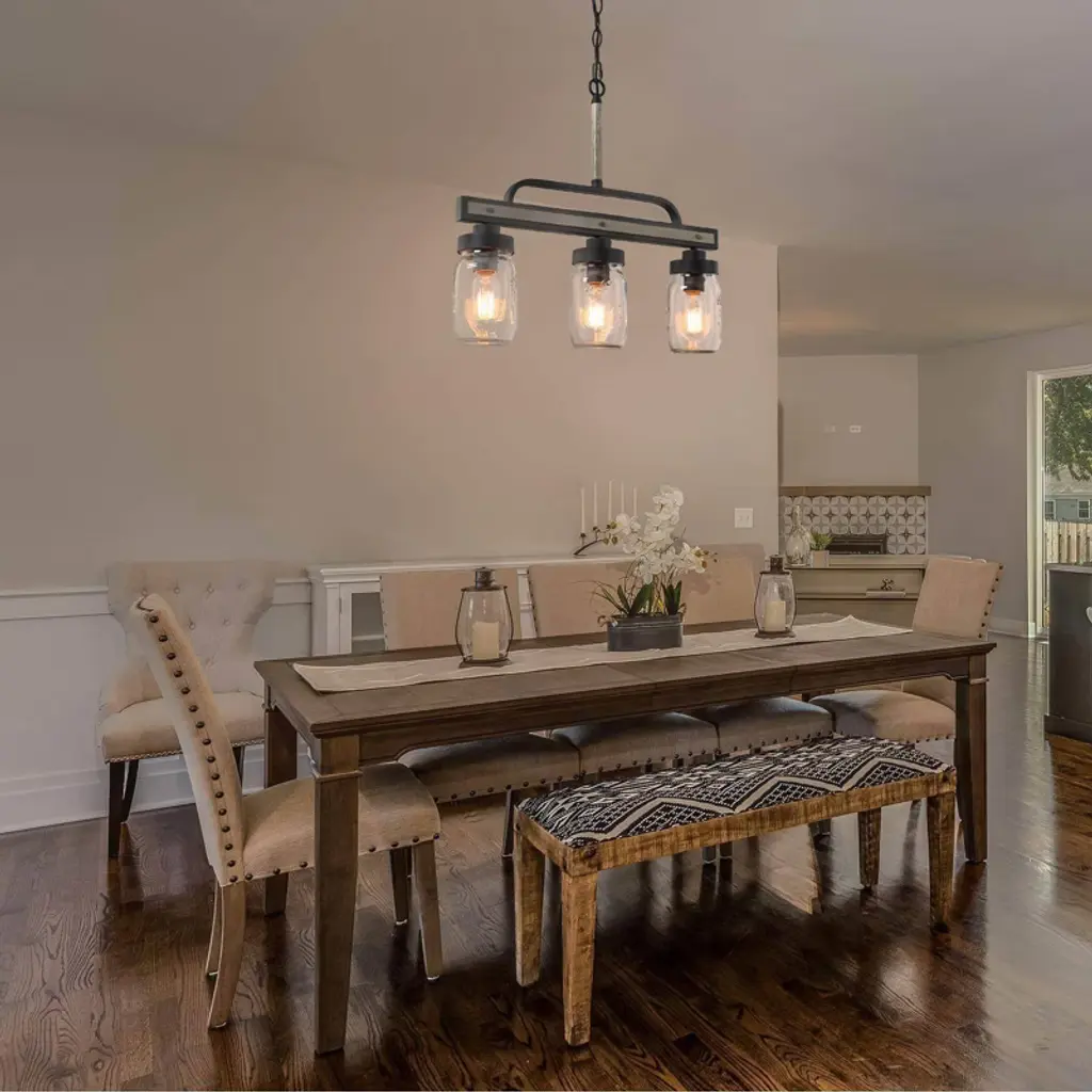 The classical Aries collection from LNC brings a warm vintage vibe to your home. It combines the traditional popular mason jar clear glass shade with minimalist black metal. The farmhouse mason jar is full of natural flavor and meets the fashion trend. The printed glass not only gives a sense of simplicity but also enhances the diffusion of light, creating calm and ambiance. The linear mason jar chandelier is comfortable for any style space. This is a perfect farmhouse hanging light for the kitchen, dining room, bedroom, living room, and entryways, adding a stylish, harmonious, and unified beauty and function to your home.