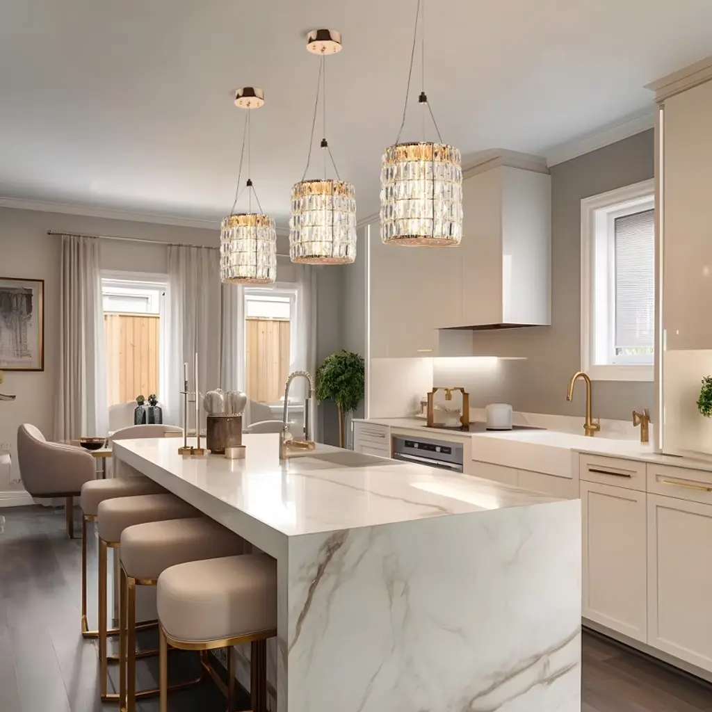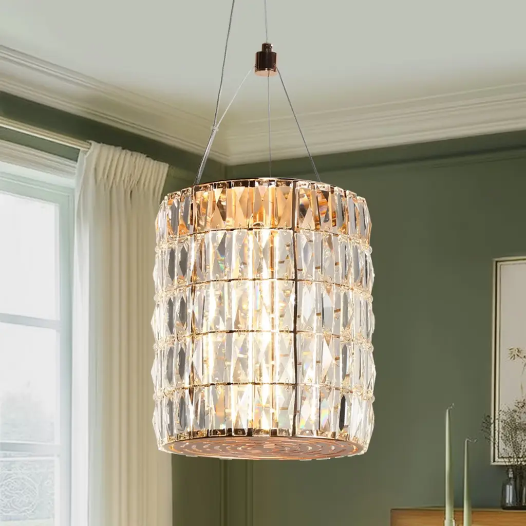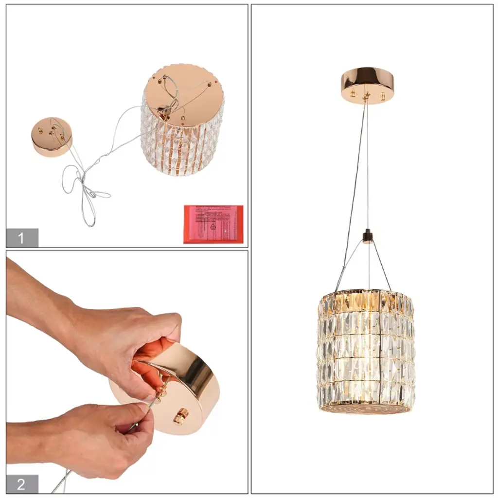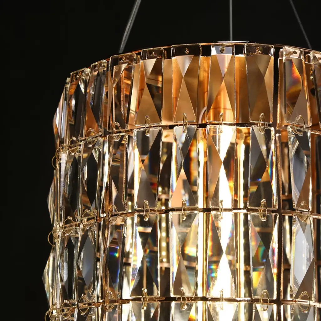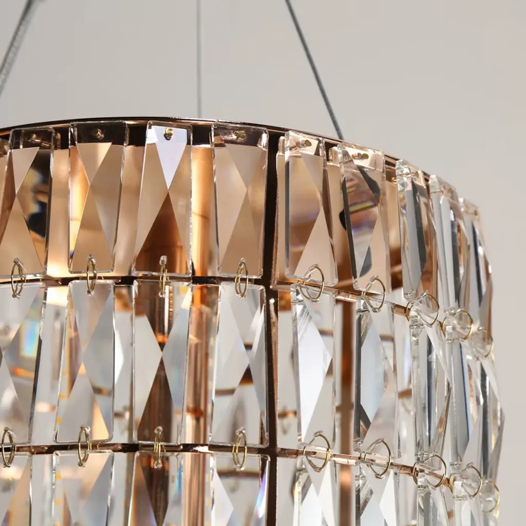 The LNC Luxury Crystal Drum Pendant from the Brusmogan Collection embodies true luxury and refinement, making it the ultimate statement piece for those seeking to elevate their interiors with timeless elegance. Each fixture showcases a breathtaking arrangement of carefully cut and precisely placed faceted crystals, gracefully suspended from a sleek, polished rose gold frame. The warm golden hue of the finish enhances its opulent character, while the crystals shimmer with captivating brilliance, scattering light in a mesmerizing dance. More than just illumination, it creates an atmosphere of beauty and sophistication that makes every moment at home feel extraordinary.