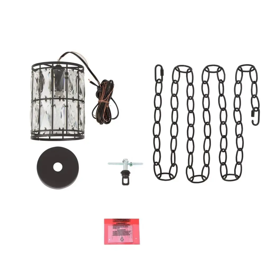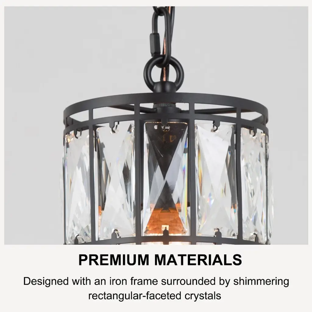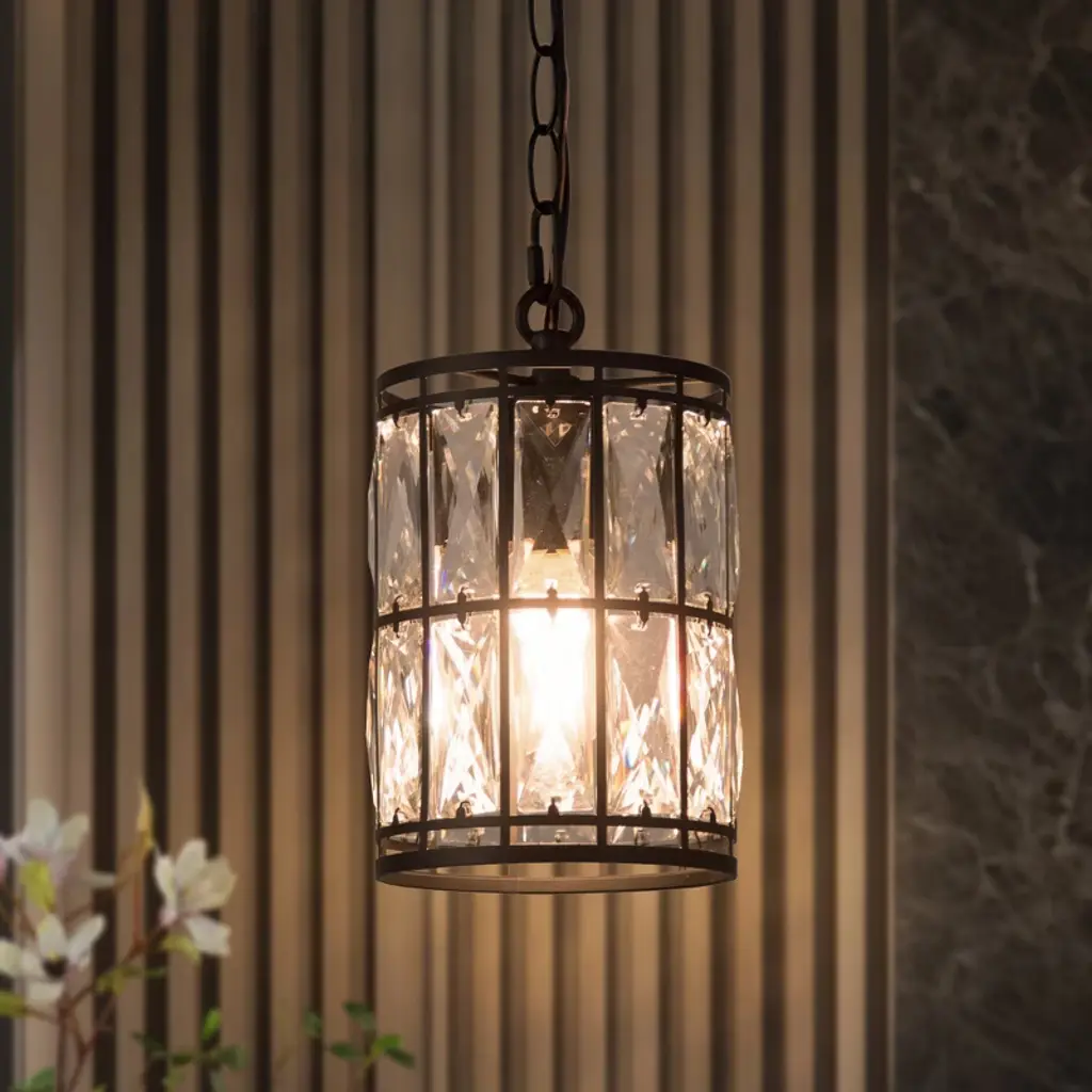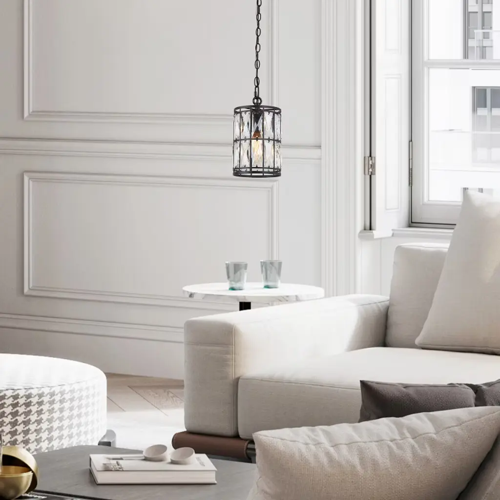 Lnc Chispa 5.5-in Modern Cylinder Mini Crystal Pendant Light With Glass Shade, Matte Black Finish, 1-light