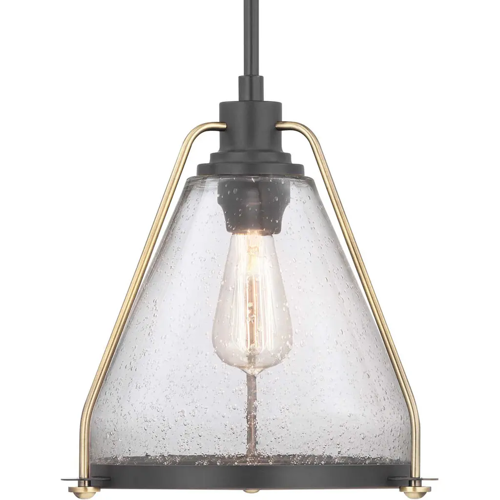 Lnc Echo 1-lights 7.5-in Farmhouse Mini Pendant Lights, Oil Rubbed Brown And Seeded Glass Shade