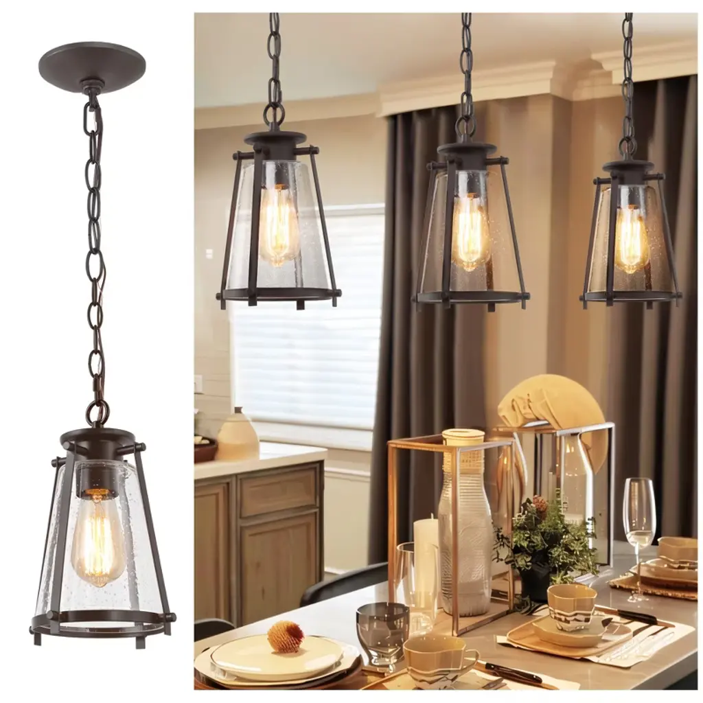 Enhance your home decor with the LNC Echo Mini Pendant Lighting. this brown pendant light features a classic lantern design in a rich oil-rubbed bronze metal finish, adding a touch of vintage charm to any room. Recommend buy a set of three for creative decoration.Whether illuminating your kitchen island, dining room, or hallway, its warm glow creates a welcoming ambiance for family and guests alike. With its versatile style and high-quality craftsmanship, this mini pendant light is sure to become a cherished addition to your home.