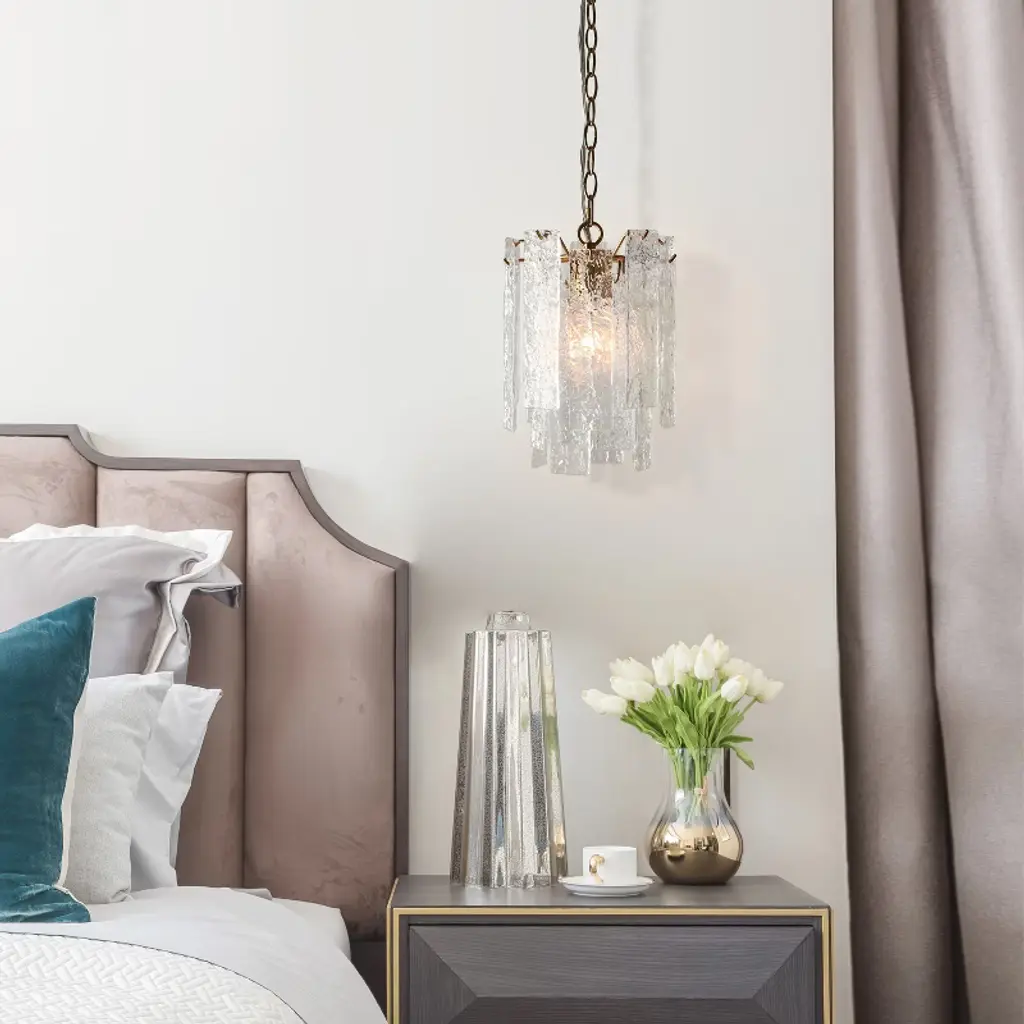 Lnc Engaveric 1-lights 9.4" Luxury And Glam Empire Crystal Pendant Lights, Polished Gold With 2 Layer Textured Glass